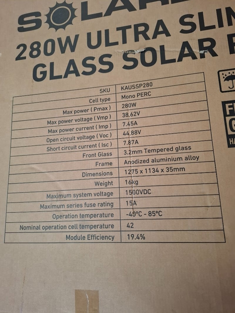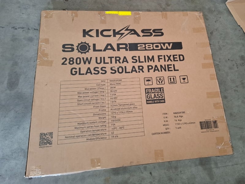 Kickass Solar 280W Ultra Slim Fixed Glass Solar panelKAUSSP280