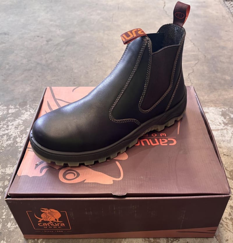 RRP $150.00, Canura Elastic Work Boots Colour: Black Size: 12