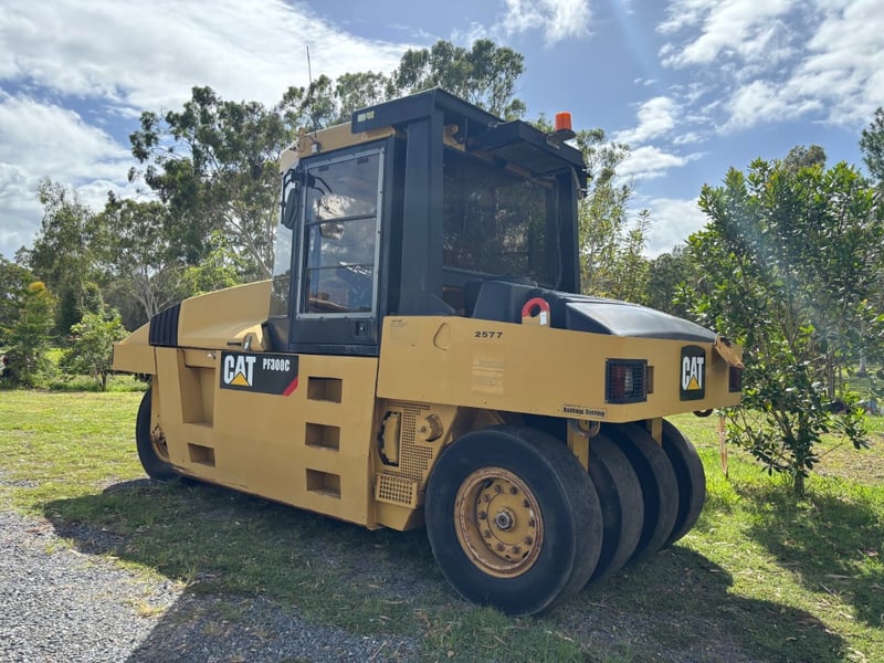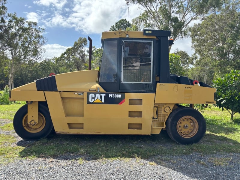 2009 Cat PF-300C 7 Wheel Pneumatic Roller Year: 2009 Make: CAT Model: PF-300c Body: 7 Wheel Pneumatic Roller Hours: 8872 Engine: 3054C 4 Cylinder turbo charged diesel Engine Serial #: CATPF300TPFB00332 Engine# 56185 Notes/Extras: Enclosed Cab, ROPS, Air Conditioner, 2000 mm Compaction Width, 14 Tonne shipping weight Note: new batteries required