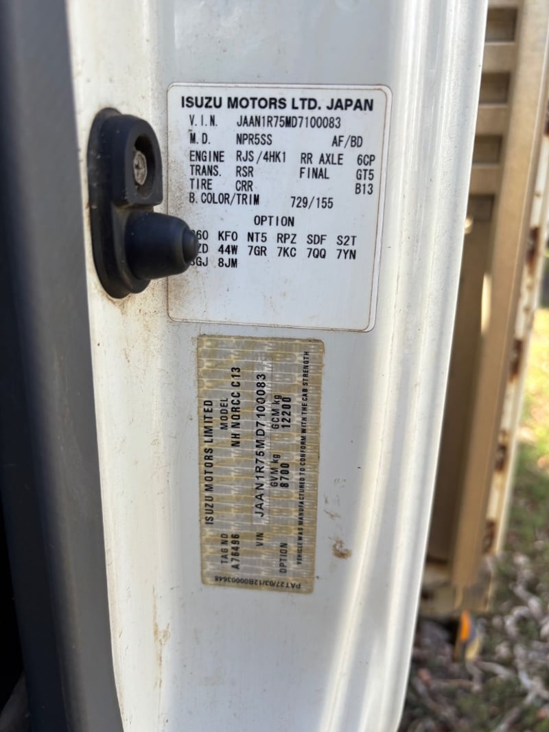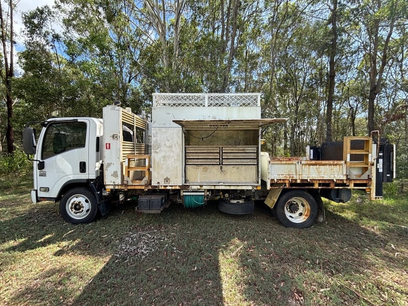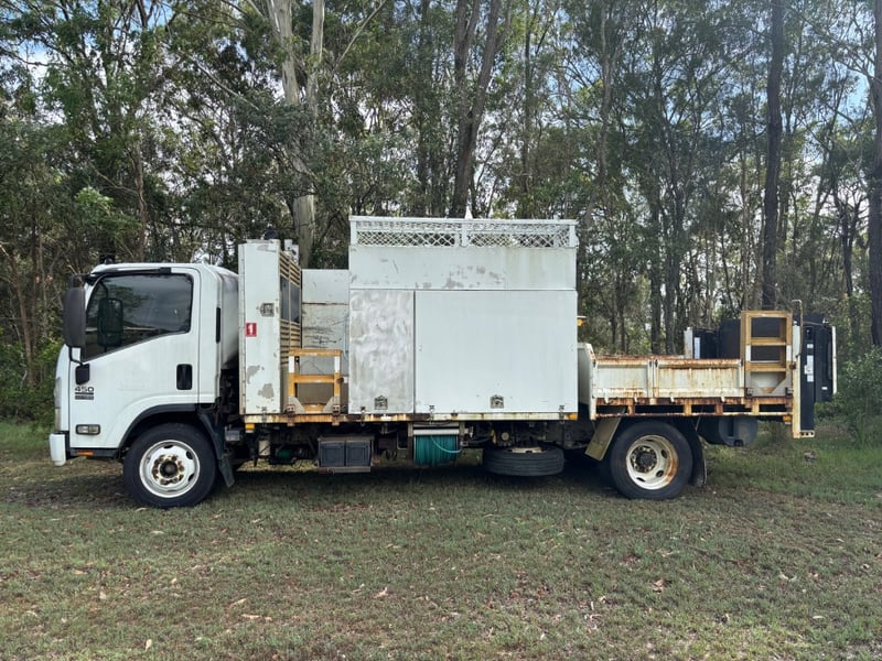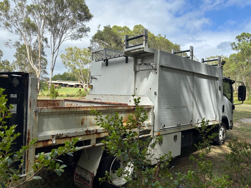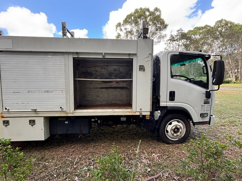 2013 Isuzu NQR450 service truck with tipper Year: 2013 Make: Isuzu Model: NQR450 Body: Service Truck with Tipper Odometer: 254803 Kilometres (at time of consignment) Transmission: 6 Gears Engine: 4 Cylinder, Diesel Notes/Extras: Tow bar, Tow Ball, Service Body with tool storage, Tipping tray VIN: JAAN1R75MD7100083 Engine No: 4HK1TCC121821 (as per ppsr) GVM: 8700 GCM: 12200