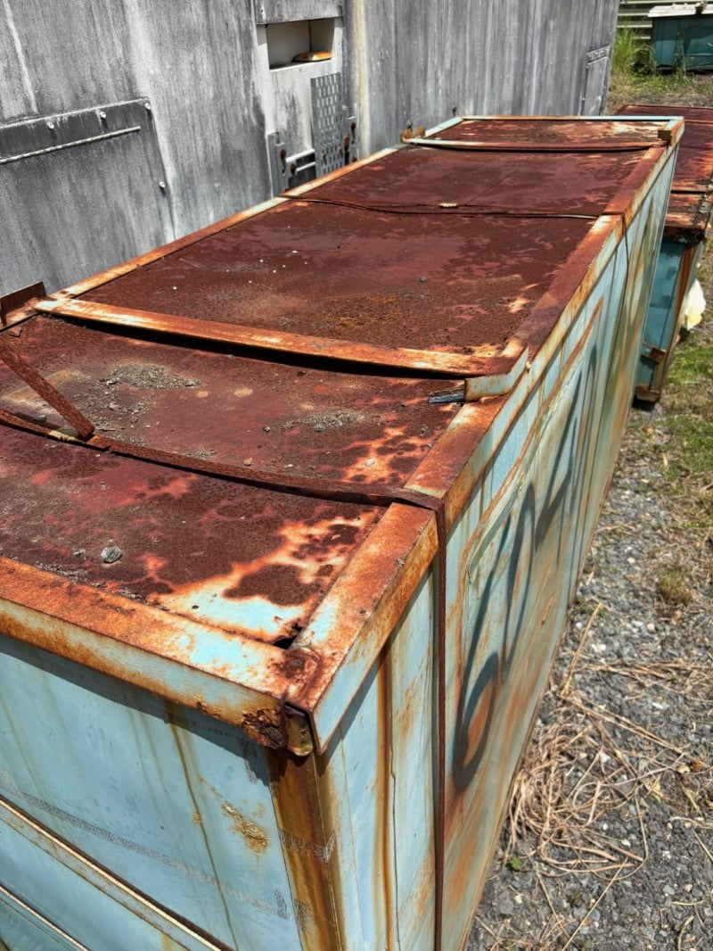 18 x 12m double truss container dome shelter Notes: in unopened steel box. Rust Damage to box (may be missing parts)