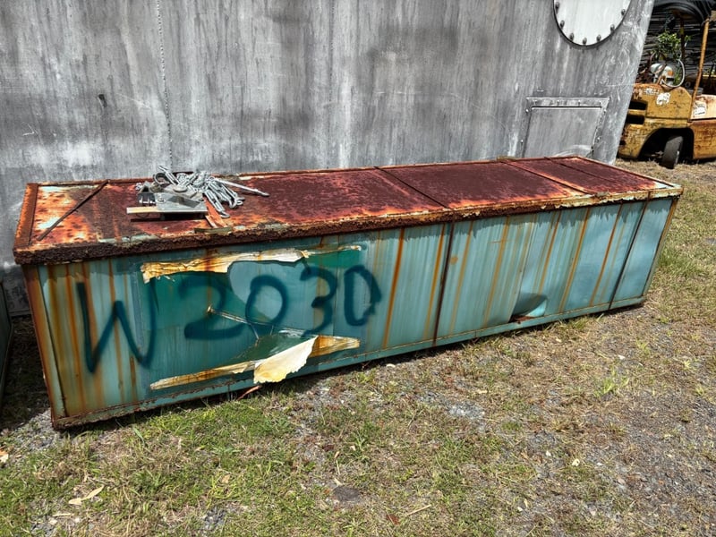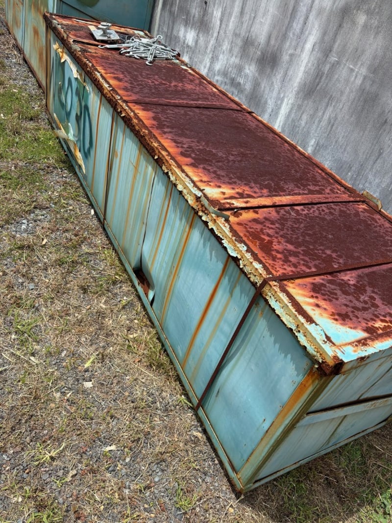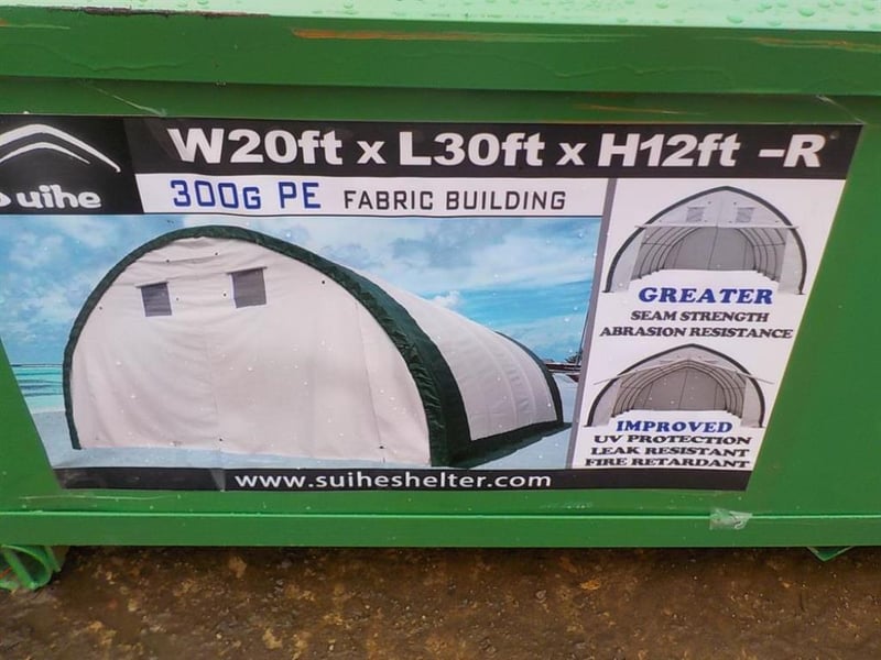 6 x 9m freestanding dome shelter Notes: in unopened steel box. Rust damage to box (may be missing parts)