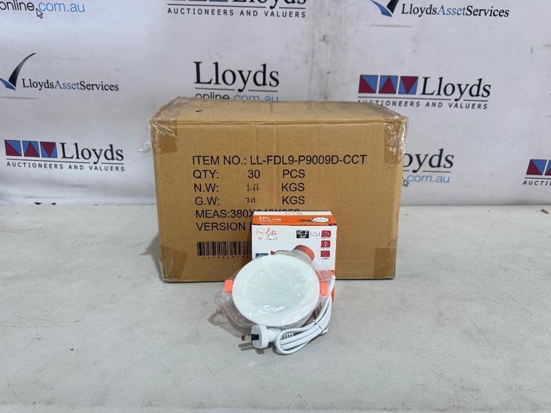 RRP $530 Combined, LiteLighting 9W LED Dimmable Downlight Tricolour 90mm Cut-out V9 30Pcs