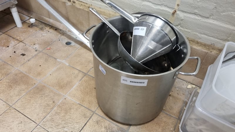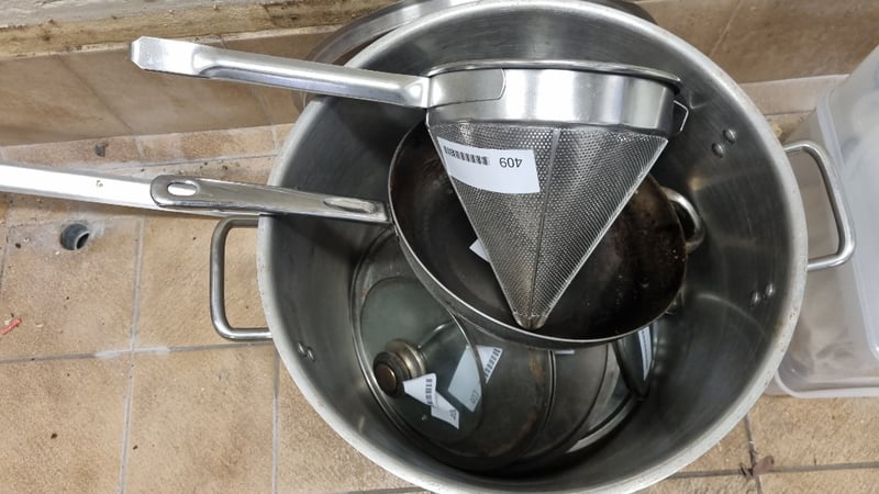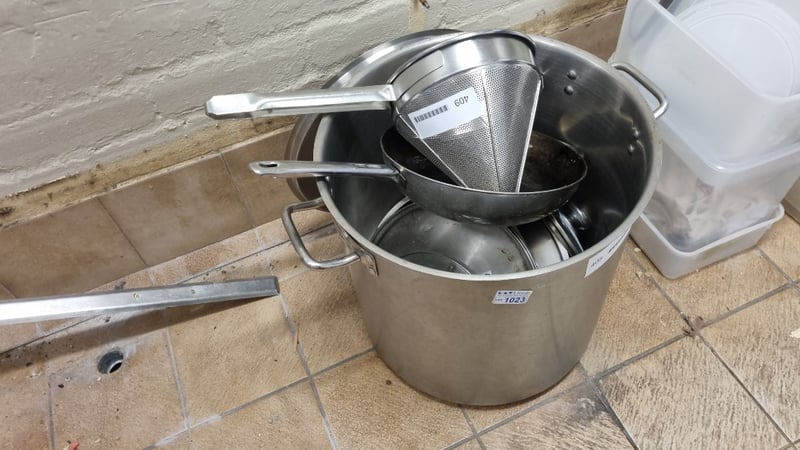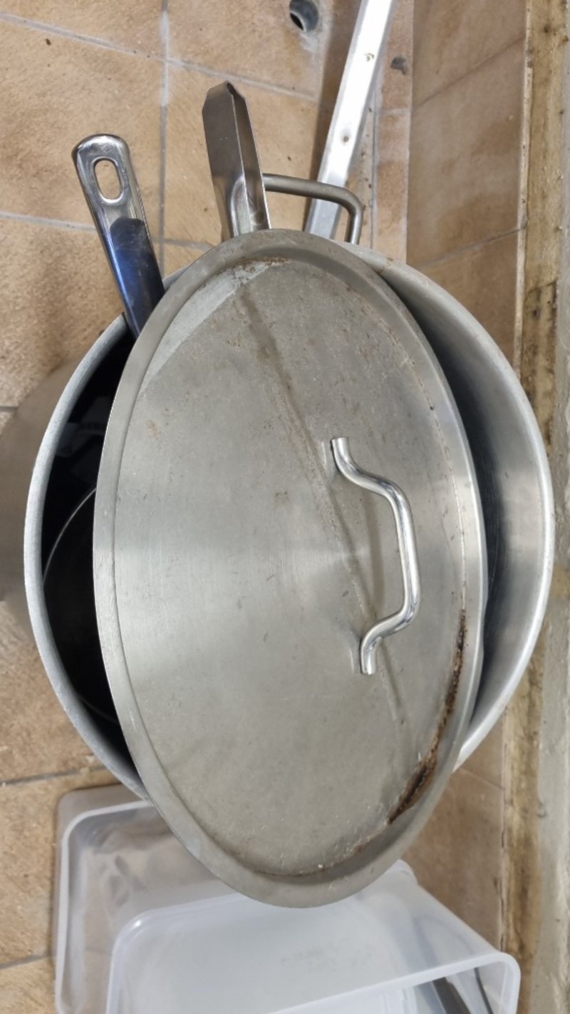 Large Stainless Steel Pot With Lid, Strainer, Pans and moreSold as Lot