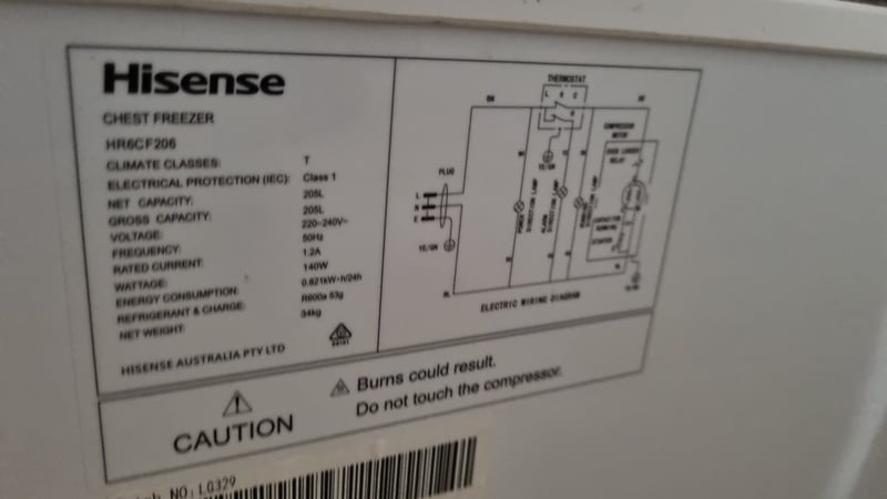 Chest Freezer, Hisense Dimensions 820h x950w x 540d