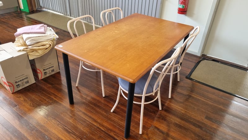 Table and 4x steel padded chairs Dimensions 1500L x 900W x 760H