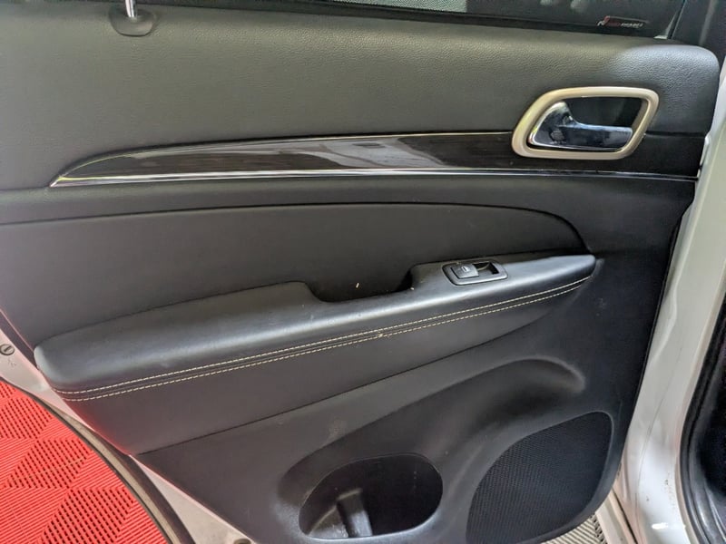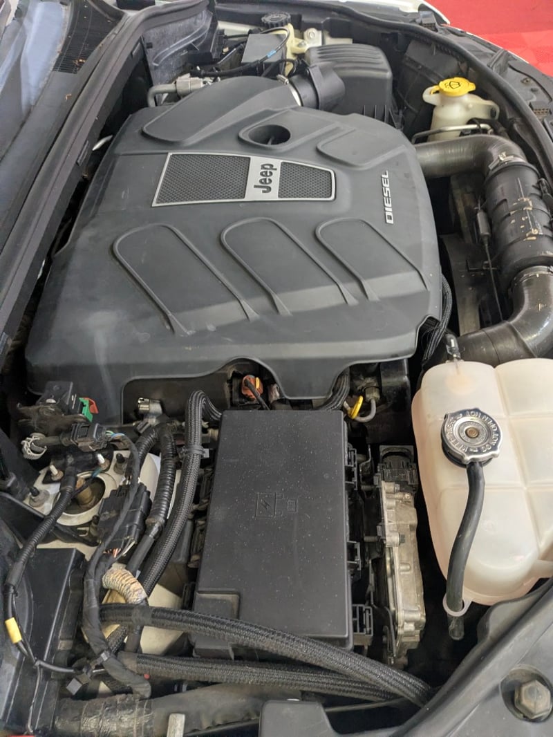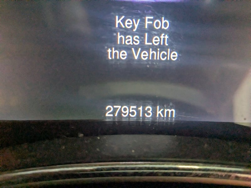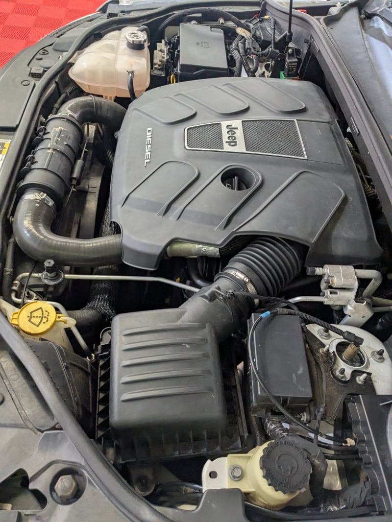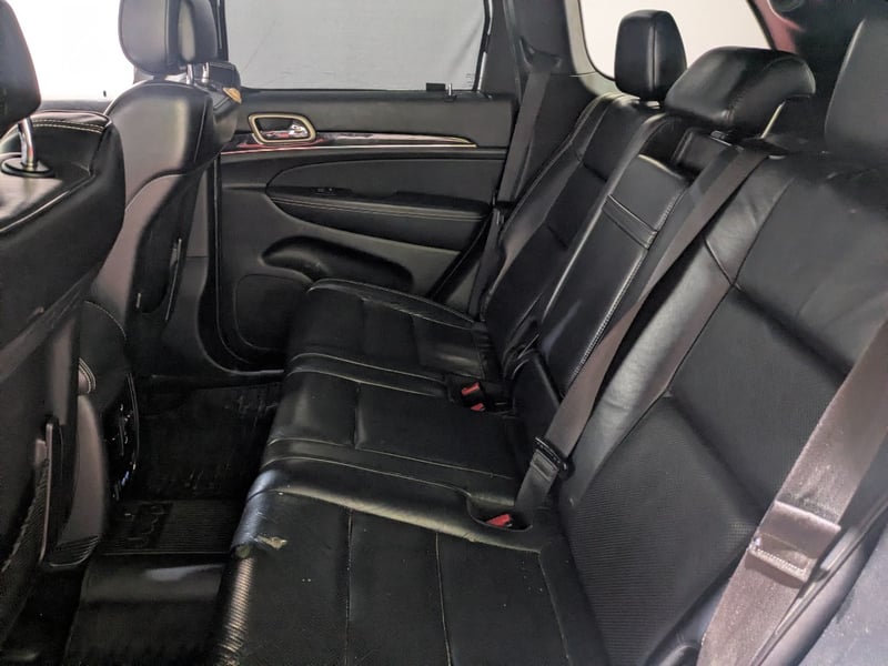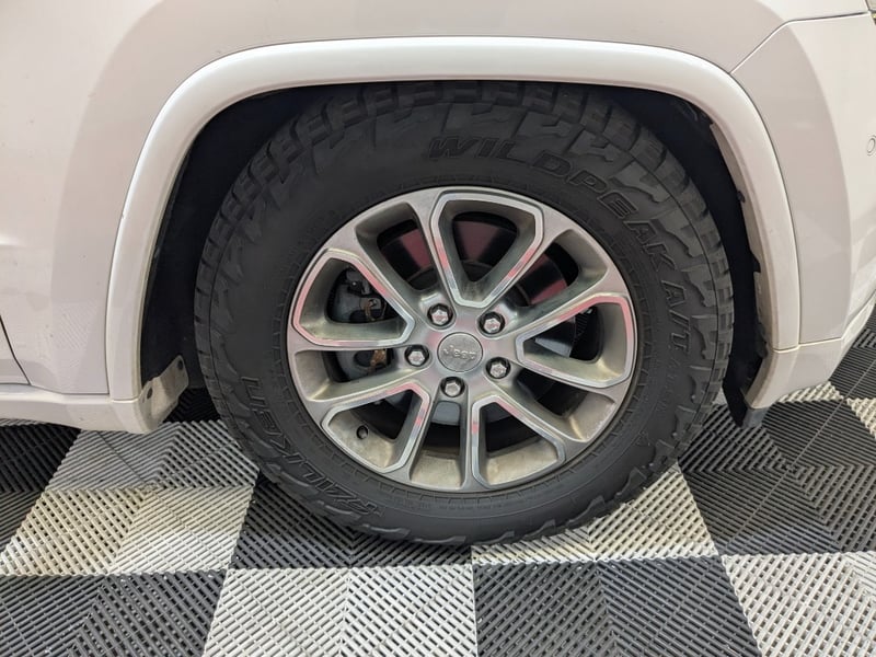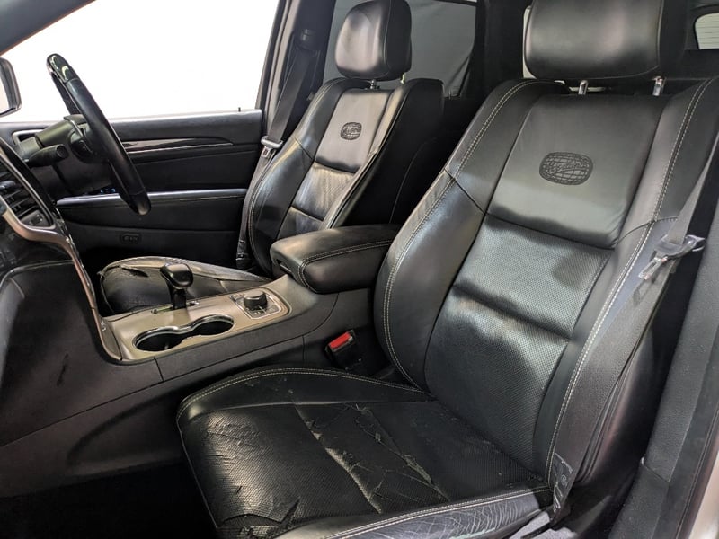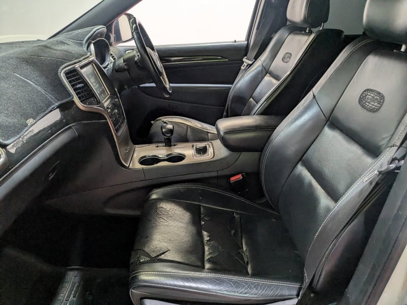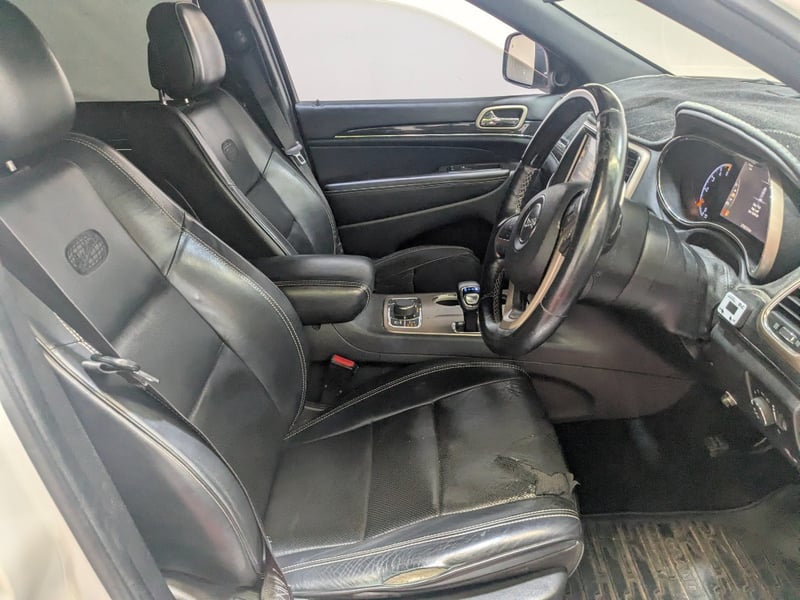 Rubber floor mats, dash mat, all terrain tyres, red fluid leaks from beneath car