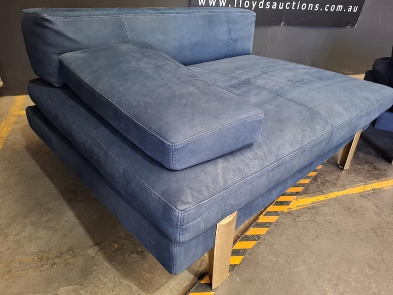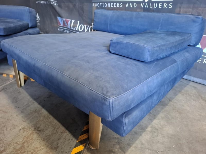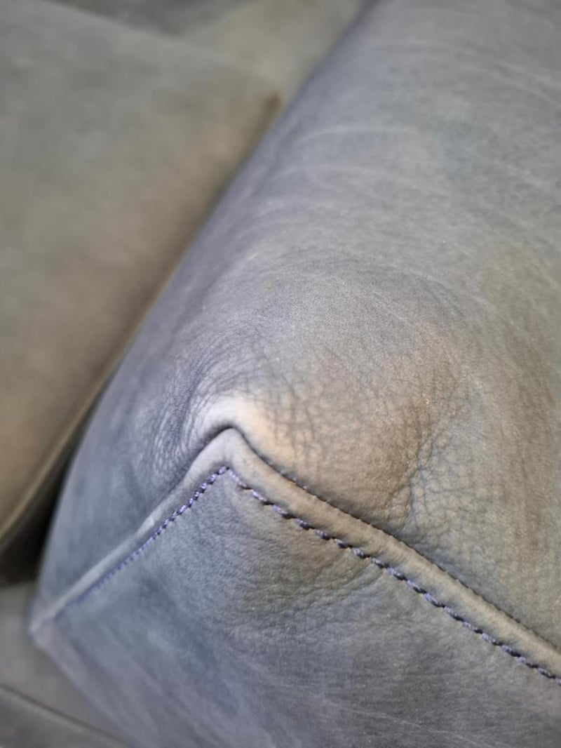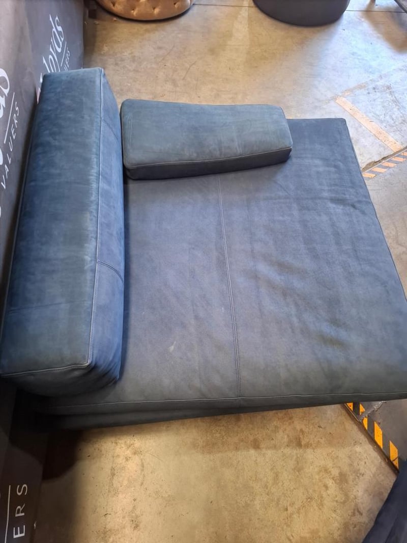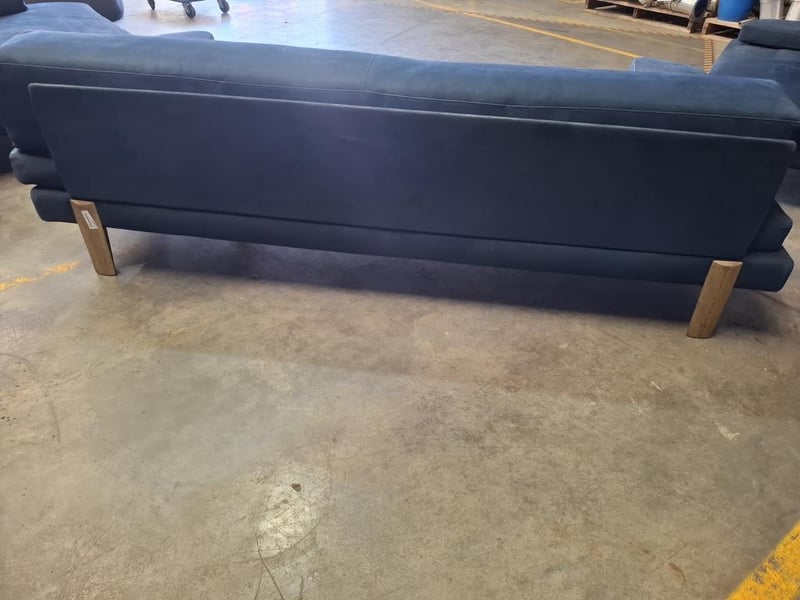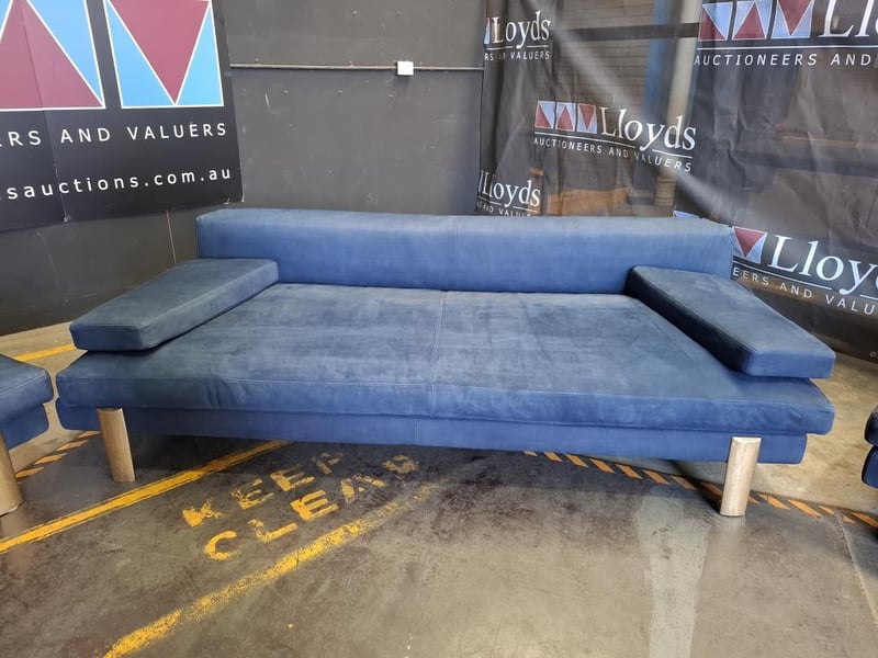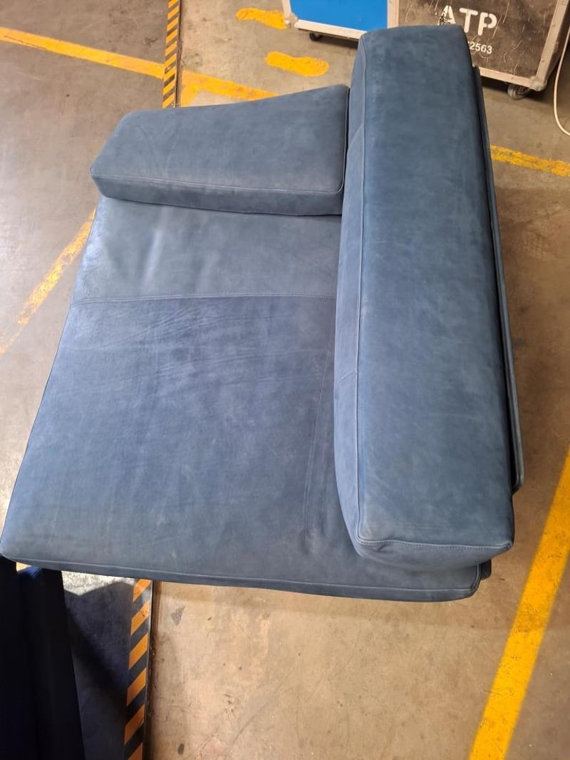 Colour this bold rarely works. Here it does. The deep ocean blue of this three-piece nubuck leather suite is the kind of choice that defines a room rather than decorating it. The silhouette is clean, the proportions are generous, and the material has developed that lived-in softness that only genuine nubuck acquires with time. Presented as a three-piece set, it is a complete living room solution for a buyer who wants to make a statement without saying a word.