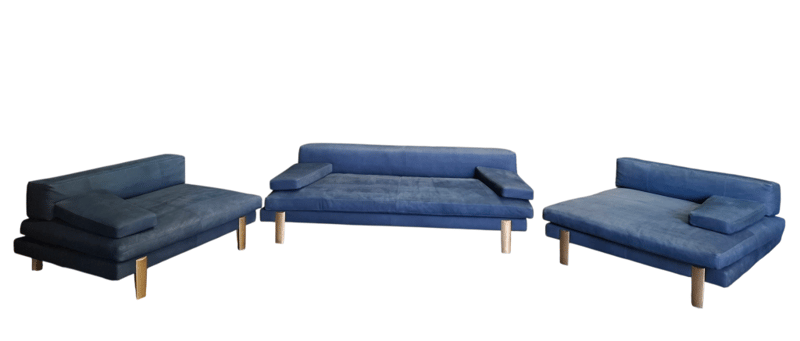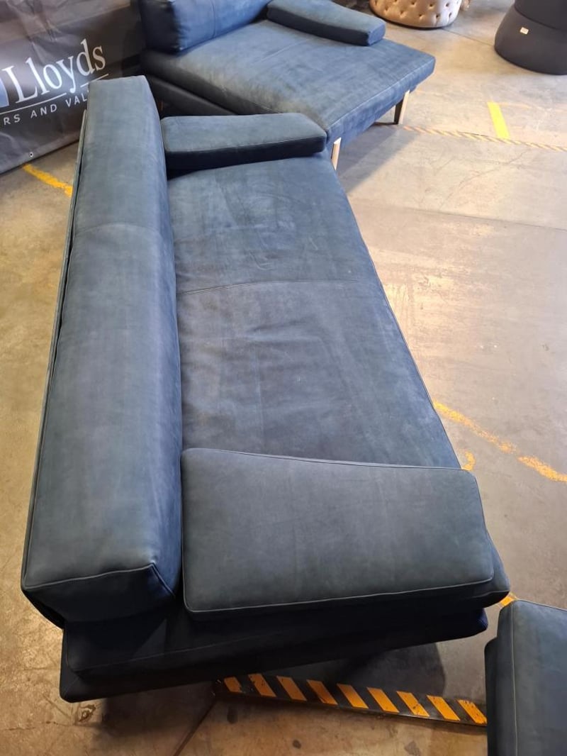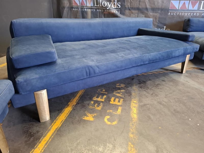 3-piece sofa suite in blue nubuck leather