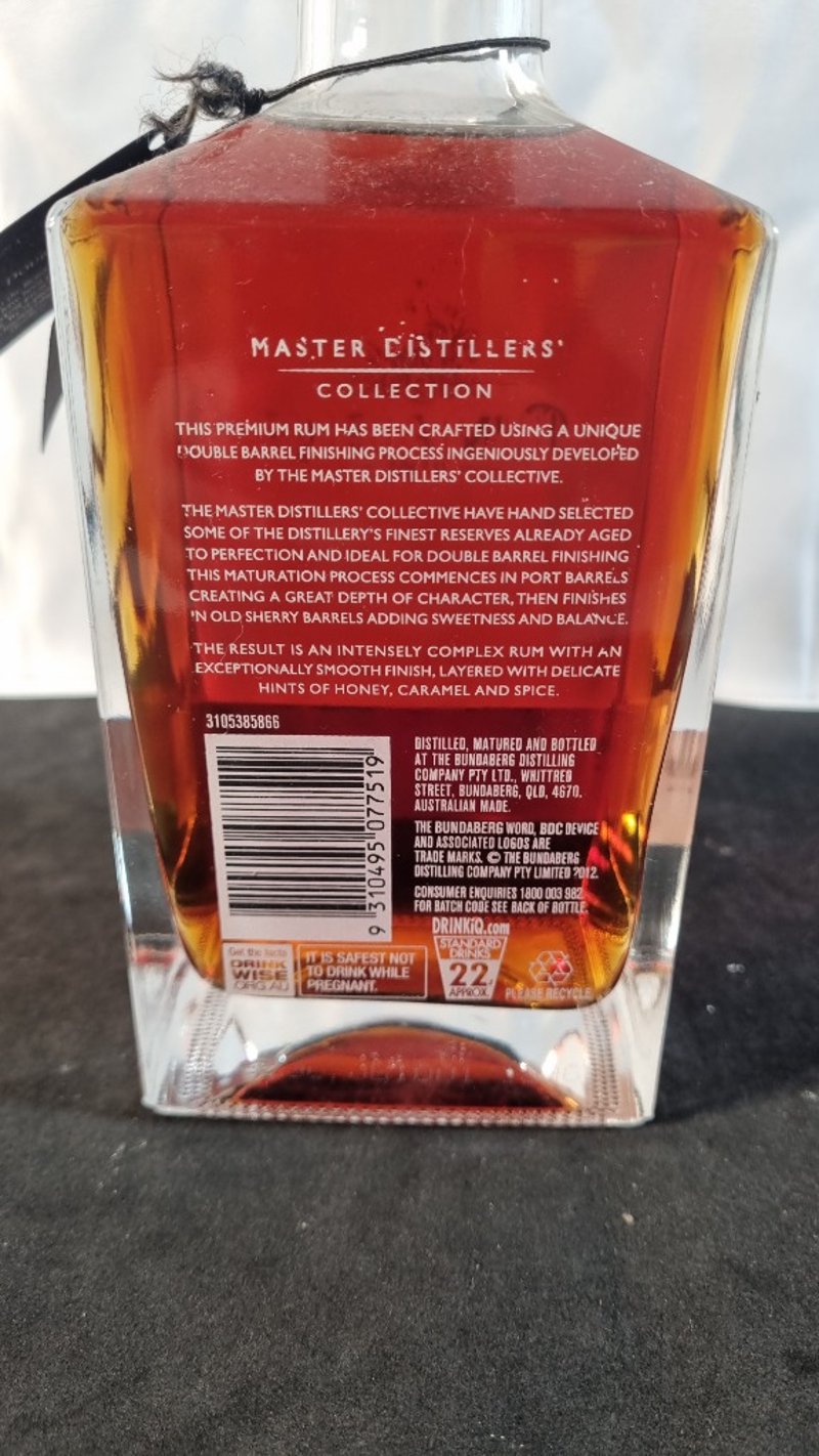 Bundaberg Rum Master Distillers Collection 2013 limited Release, Double Barrel Sherry And Port Complexity And Character.Bottle No: 22454700ml 40% Alc VolNote: White Print On Bottle Is Peeling Off700ml, 40% Alc Vol