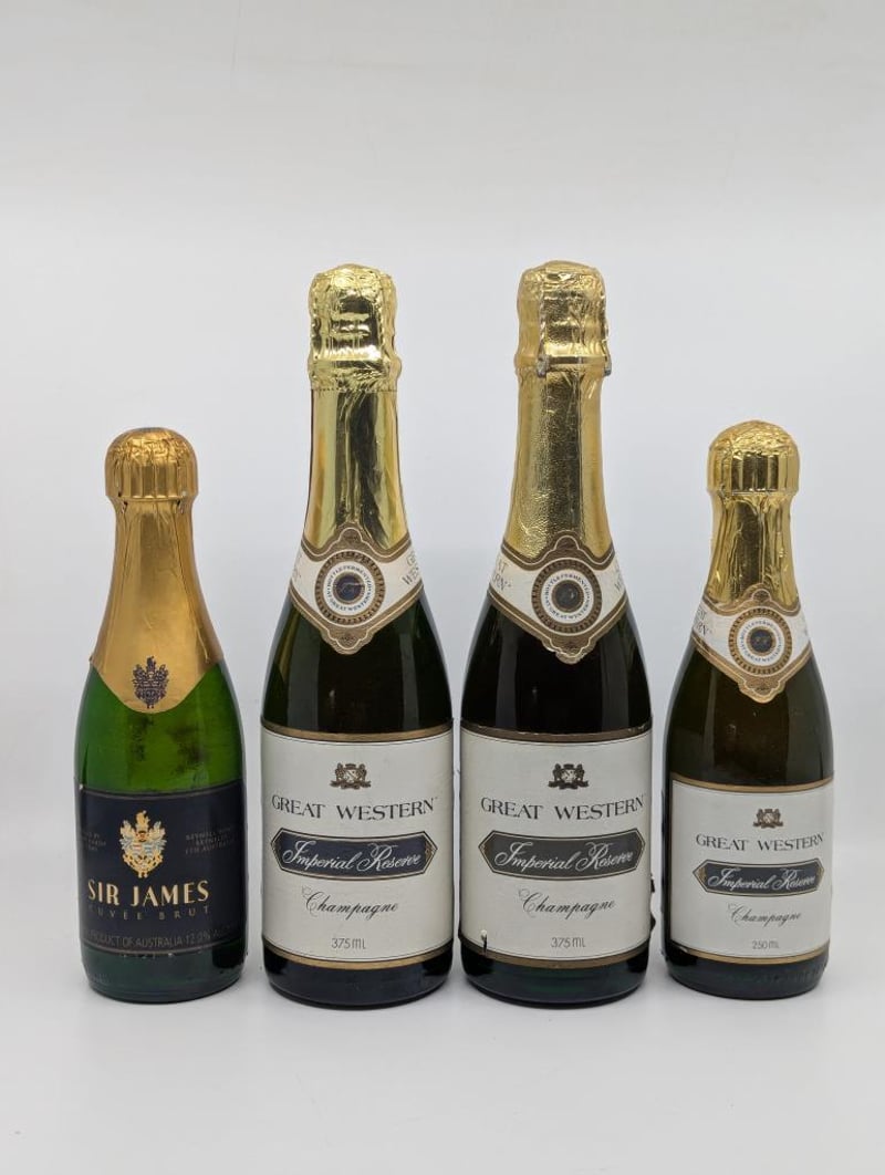 Assorted wine, including Great Western Champagne 375ml x 2, 250ml x1, 10.5% alc/vol and Sir James Cuvee Brut, 250ml x 1, 12% alc/vol