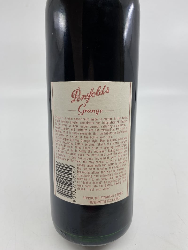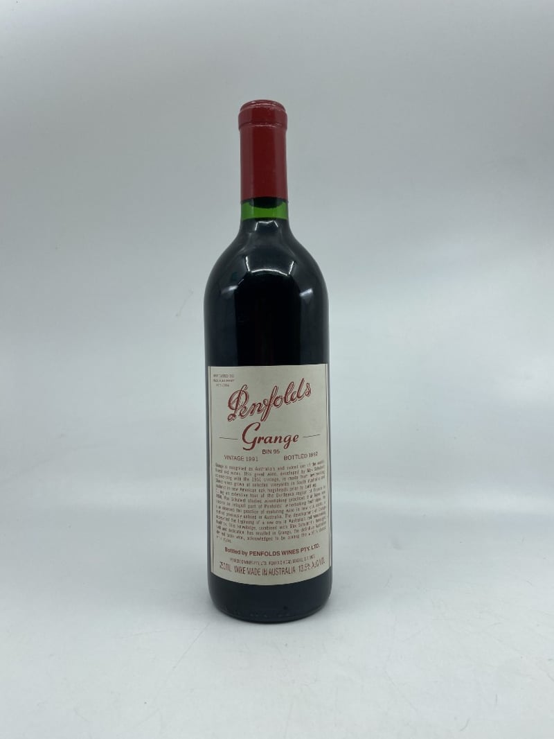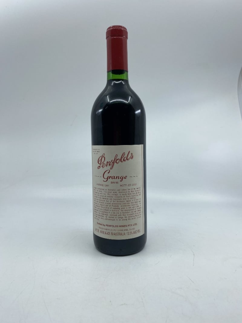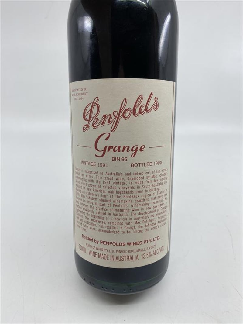 PENFOLDS GRANGE RED WINE, Dedicated to MAX SCHUBERT 1915-1994, VINTAGE 1991, BOTTLED 1992, BIN 95, 13.5%ALC 750ML. Bottled by PENFOLDS WINES AUSTRALIA.