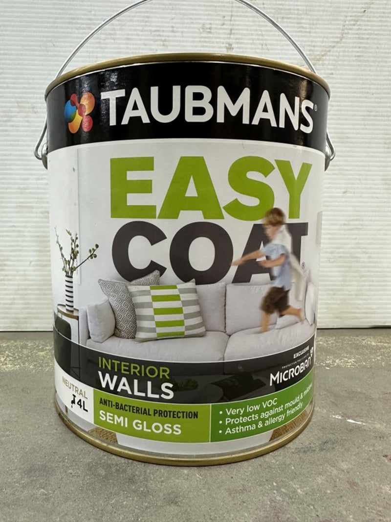 Paint, Taubmans, Easy Coat, Interior Walls, Semi Gloss, Neutral, 4L Tin