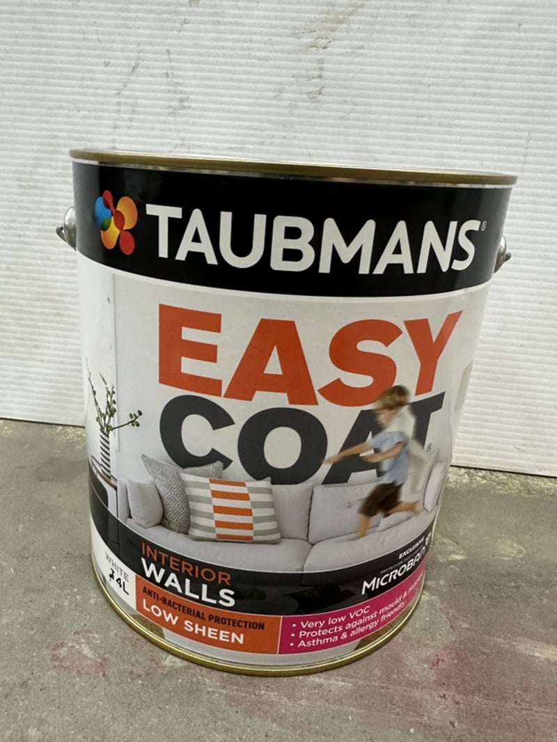 Paint, Taubmans, Easy Coat, Interior Walls, Low Sheen, White, 4L Tin