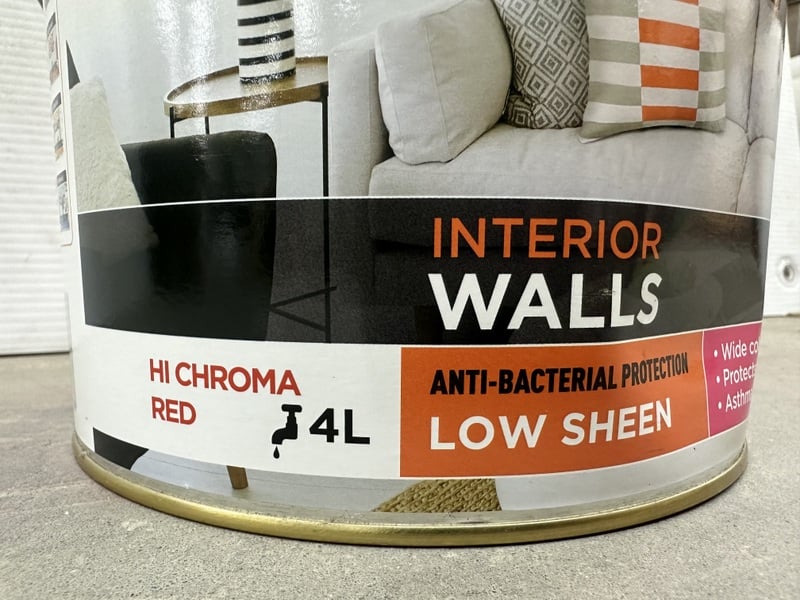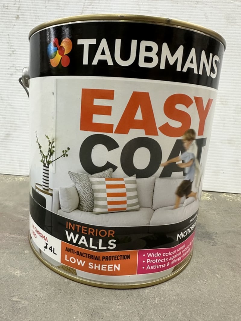 **UNRESERVED**Paint, Taubmans, Easy Coat, Interior Walls, Low Sheen, Hi Chroma Red, 4L Tin BID PER LITRE, MUST TAKE 4 LITRES