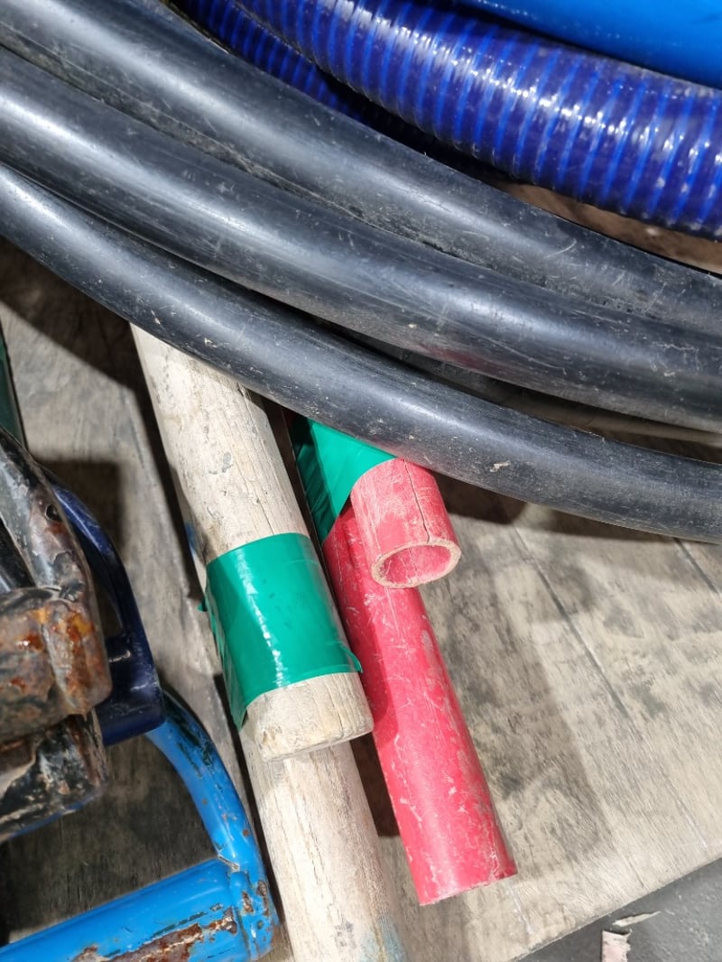 Assorted lot, includes pvc hoses -various sizes and shovels.