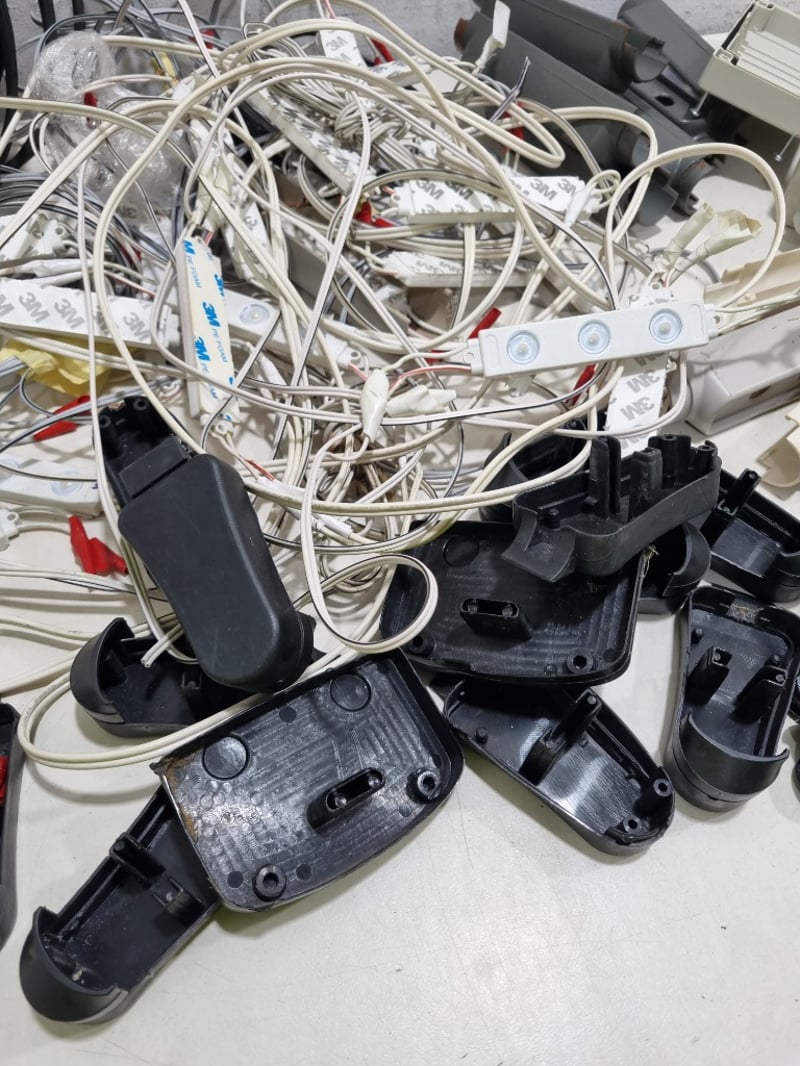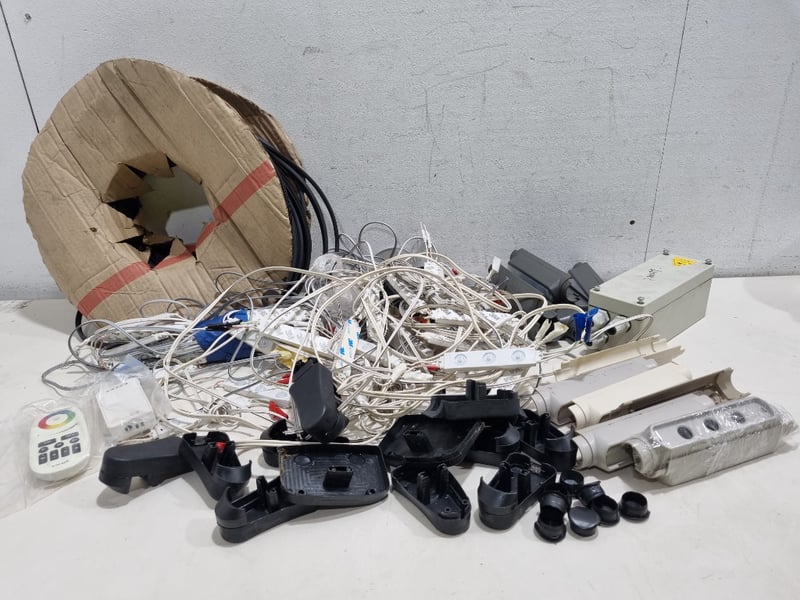 Assorted lot, includes, large rubber cable strip, led lights and remote and more......