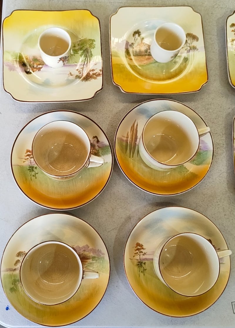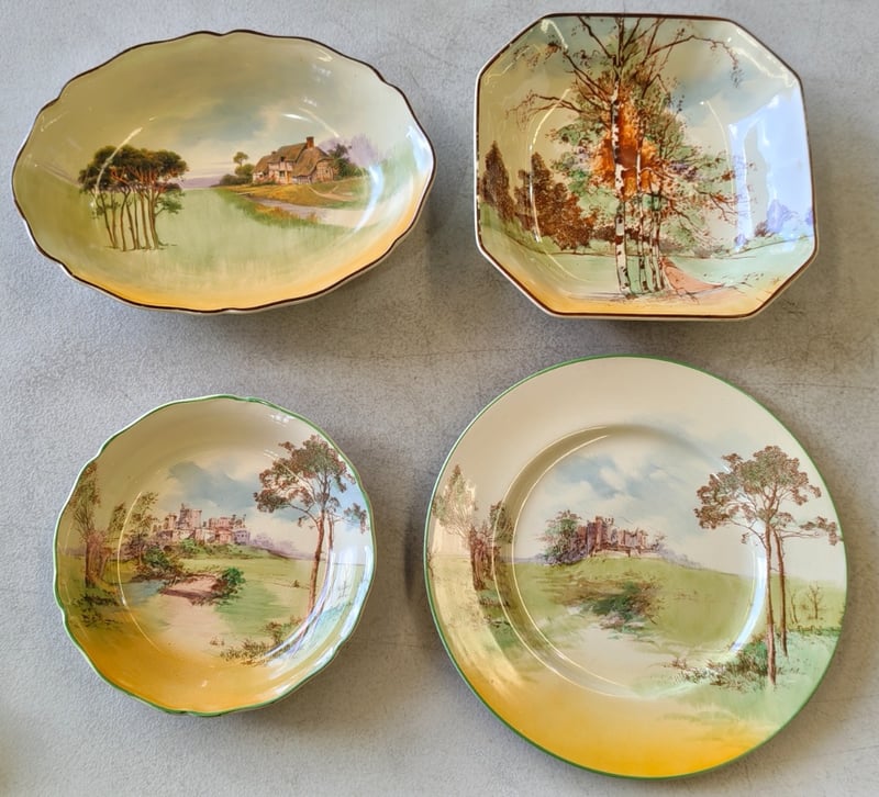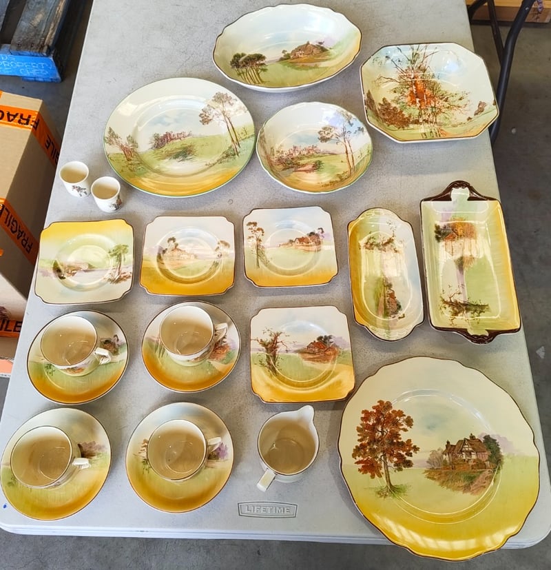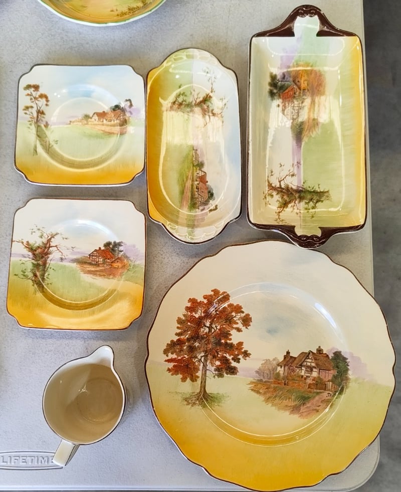 1 x Assorted Lot of Royal Doulton "Rustic England" Collection Glassware, including Plates, Bowls, Teacups, Egg Cups and Milk JugNote: minor cleaning required