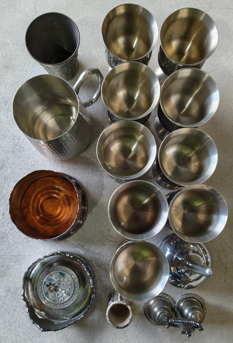 1 x Lot of Assorted Items, including Pewter Goblets, Wine Coasters, and moreNote: Sold as Lot