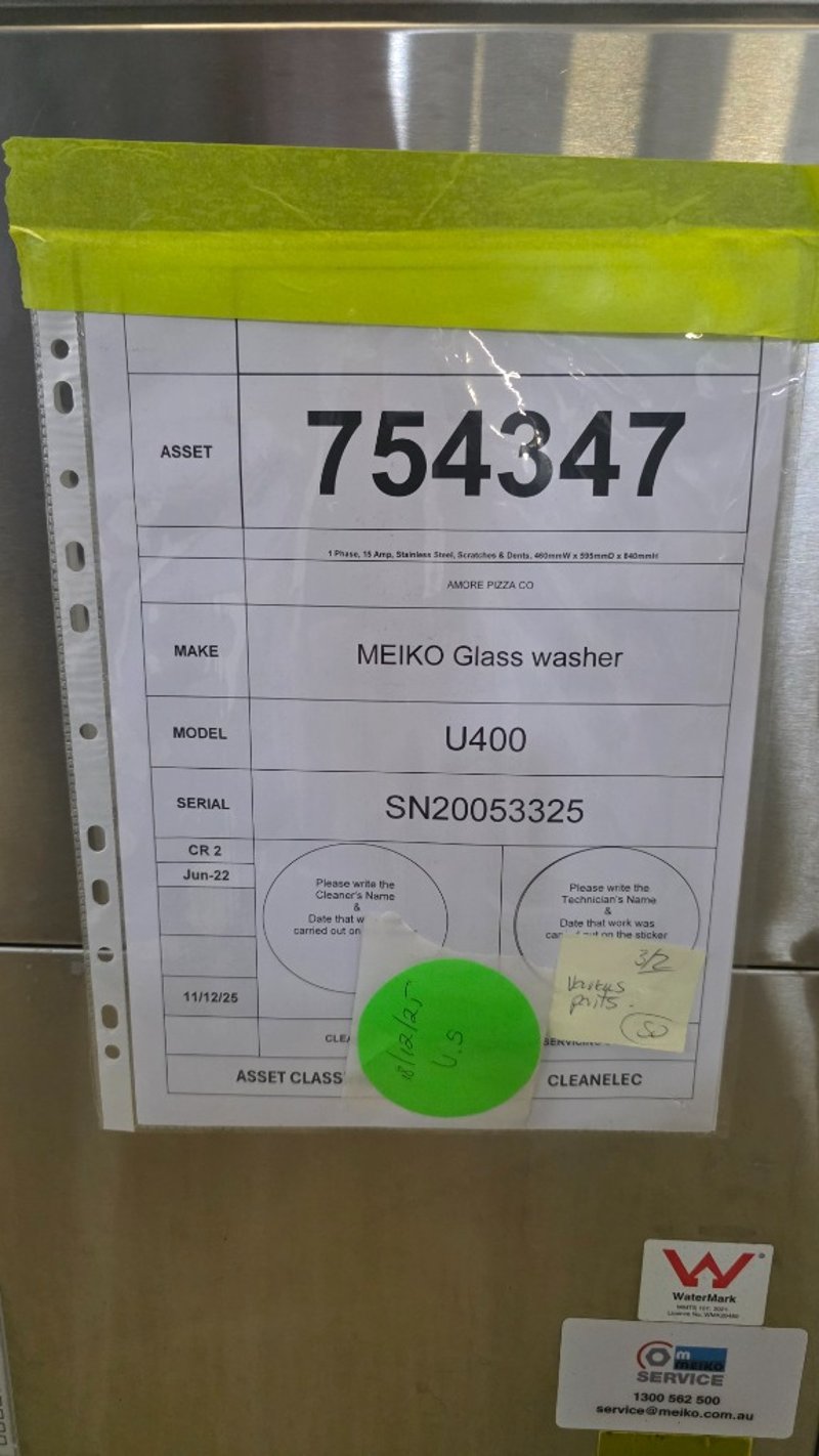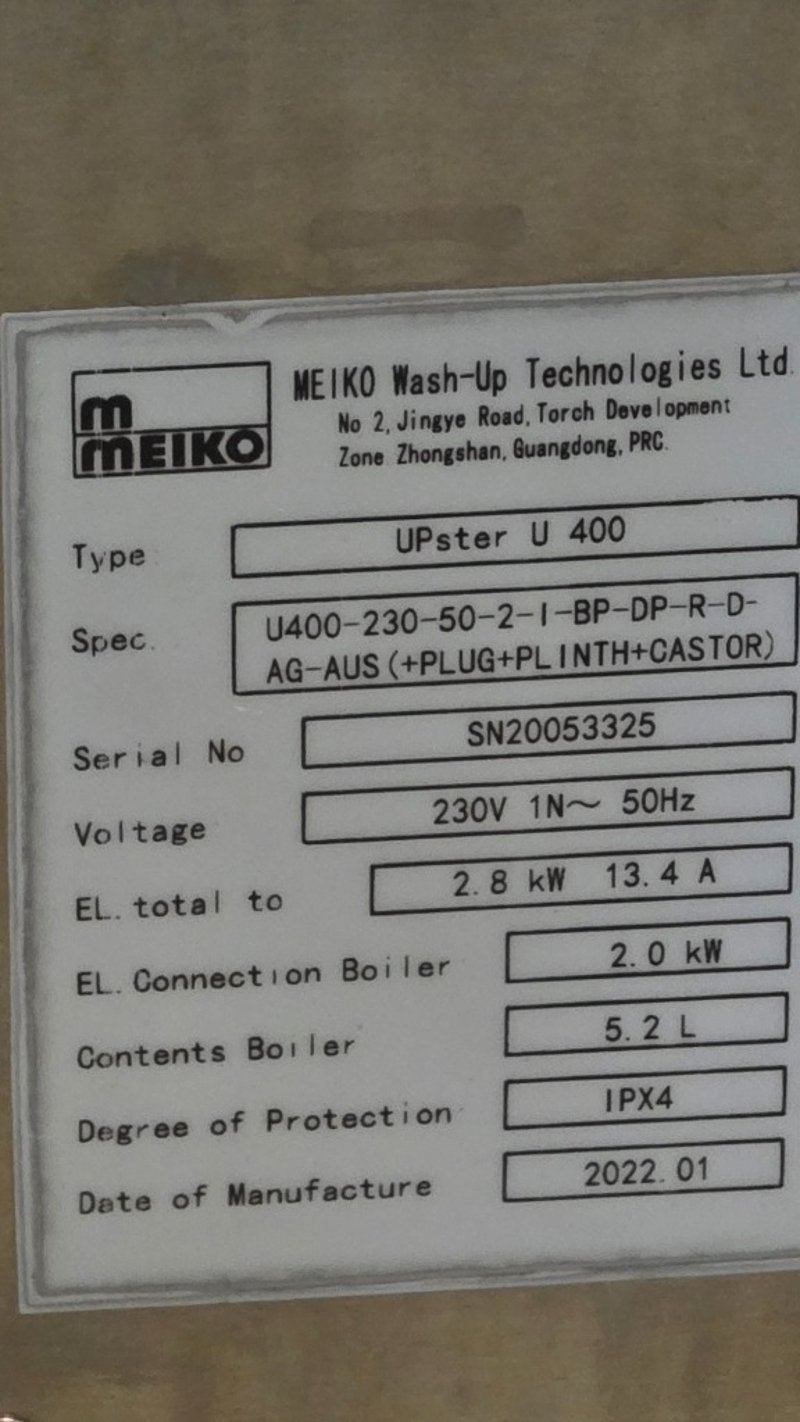 Glass washer, Meiko, upster, under bench, model: U400