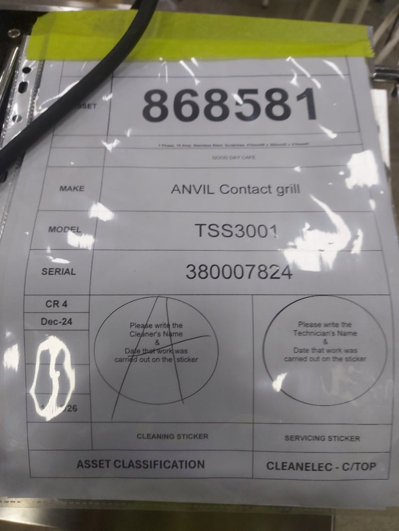 ANVIL Contact Grill, TSS3001, Serial: 380007824