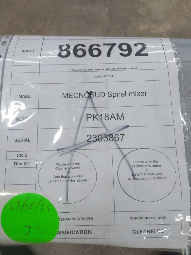 MECNOSUD Spiral Mixer, PK18AM, Serial: 2303867