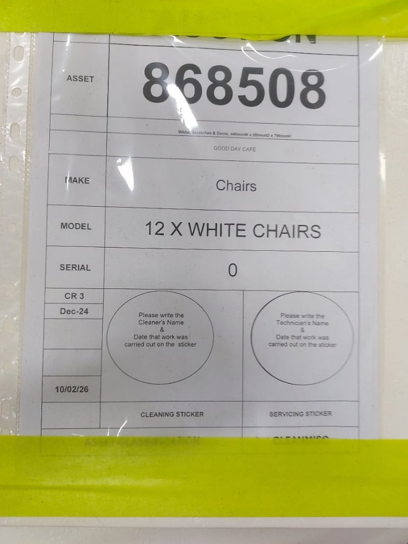 Chairs, White, Scratches & Dents BID PER EACH MUST TAKE 4