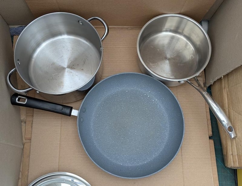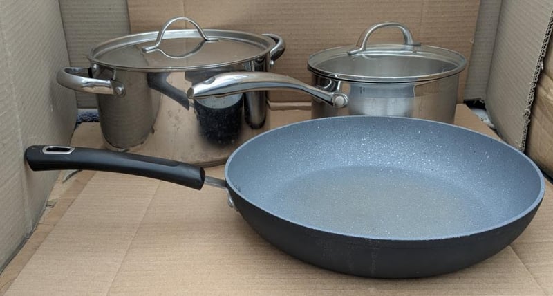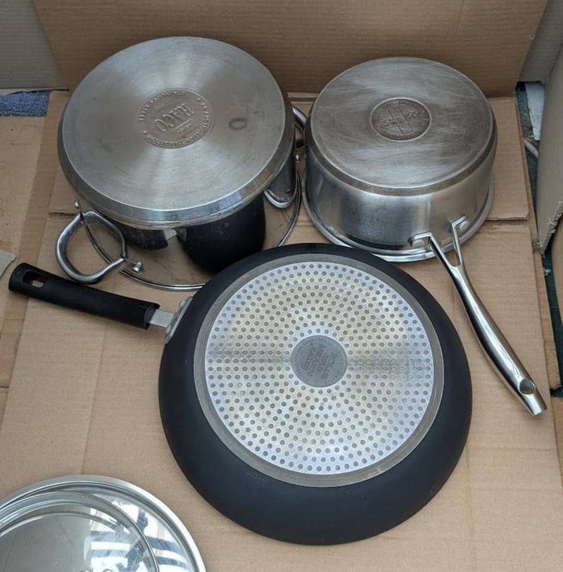 Swiss Diamond 20cm and RACO 24cm stainless steel pots and Baccarat Never stick frypan
