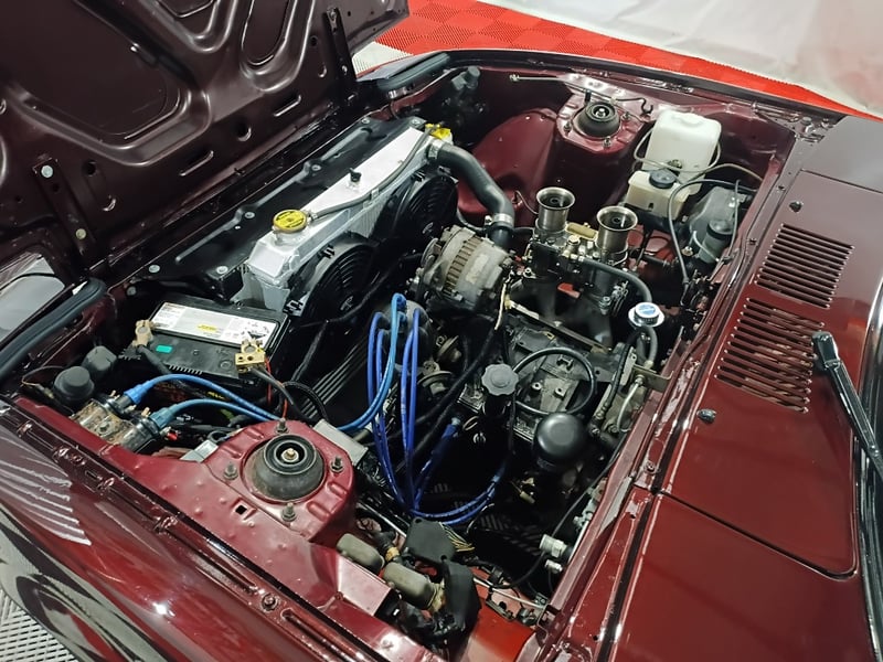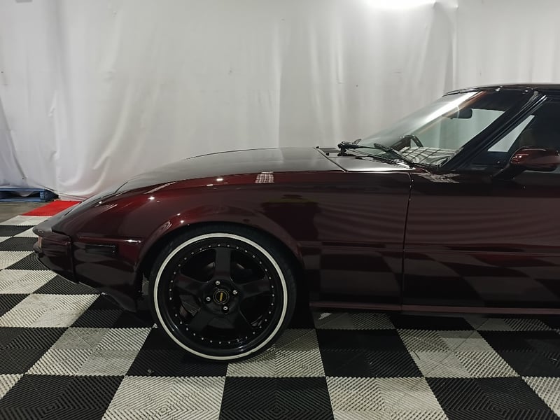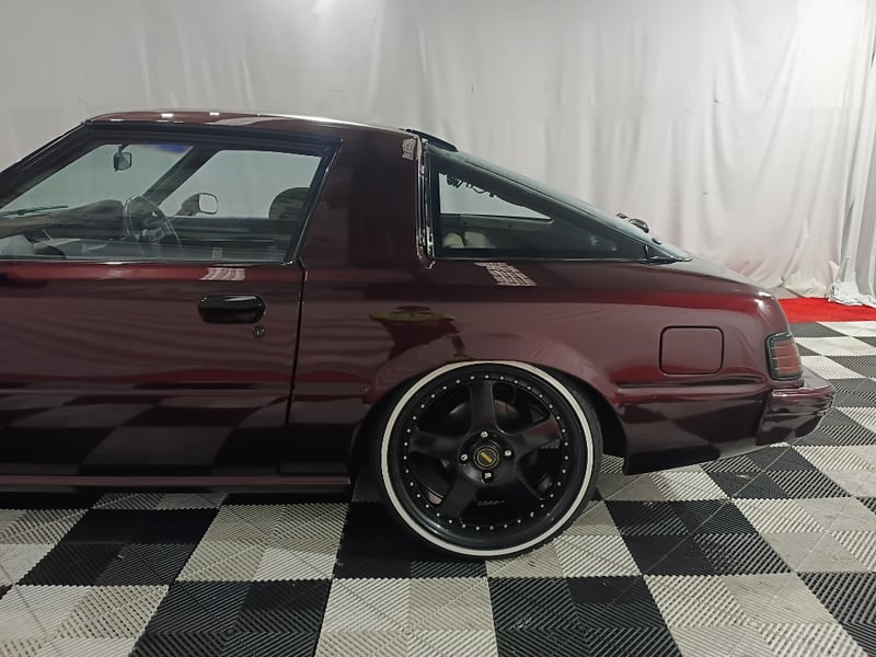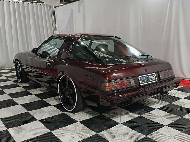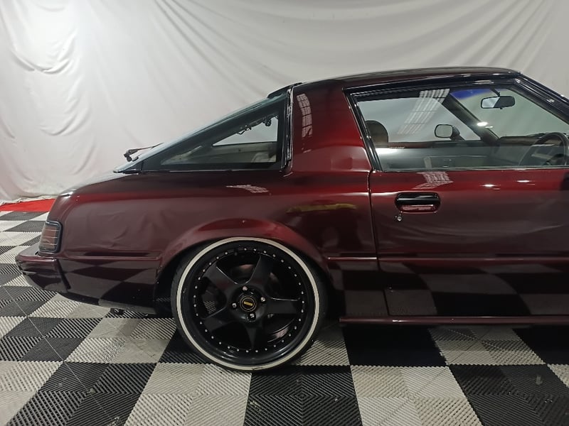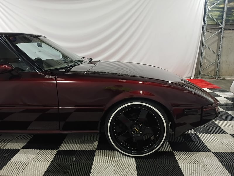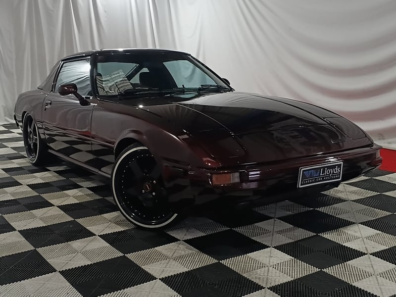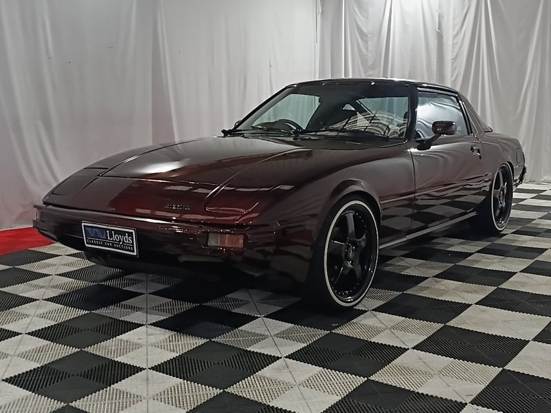 A classic first‑generation Mazda RX‑7 sports coupe, known for its lightweight design, balanced handling and rotary engine performance. This example is presented in Brandy Wine and fitted with a modified naturally aspirated high‑compression Bridgeport 12A rotary engine.