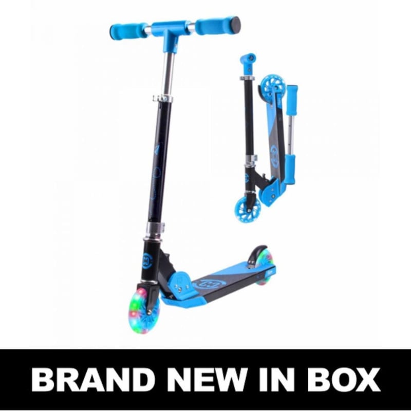 RRP $99 CORE Foldy Complete Kids Scooter - BlueCORE Kids Foldy Scooter - with LED wheelsWe are excited to expand our range this year by introducing CORE’s first foldable scooter. The Foldy1! Overall Height: Handlebar 640mm – 915mm Age range: 3+ Handlebar: Extendable Bar Height from 630mm – 845mmGrips: Super comfy 165mm Foam Handle gripsHeadset: 360degree spinning headsetWheels: LED Light up – 100mm plastic spoked wheelsBearings: CORE Premium Bearings Deck: Pro Boxed Scooter Deck 440mm x 90mmFolding Mechanism: Easy pull lever to fold Weight: 2.78KG Maximum Rider Weight: 100kgPerfect for beginnersPutting smiles on everyone’s faces this is the perfect introduction to 2-wheeled scooters. The Foldy1 has been specially designed for younger children, and kids. With the extendable bar height, this scooter will last well beyond the age of 3+, maximising the lifespan of your scooter, and also giving a comfortable ride. Easy storage and TransportationThis scooter is one of the lightest kid’s scooters on the market. Only 2.78kg, with the easily adjustable bars and folding mechanism, this makes packing away the Foldy1 incredibly simple and quick. Perfect for easy storage and transportation. Perfect manoeuvrability Our 360 degree spinning headset allows for a natural feeling ride, thus the perfect introduction to 2 wheels. Steering just like a bike makes the scooter a lot more responsive and gets rid of any restriction to movement. This will ultimately make the scooter a lot easier to manoeuvre which is very important for a beginner. Quality CheckedLike all of our products, we put them through rigorous testing. Our Professional team rides and tests all of our products to make sure they are the highest quality and strength. This is a very important stage in our quality control checks. **Please note that the Foldy1 has been designed and engineered for transport use, NOT tricks or stunts** #e2mob
