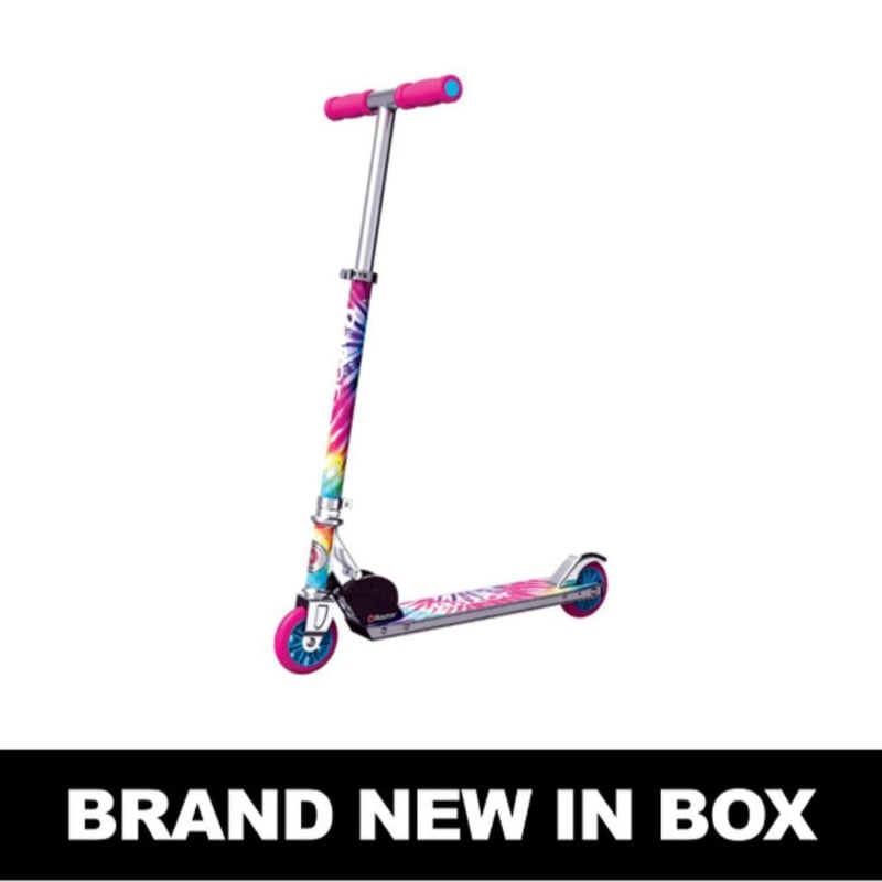 The Razor A Special Edition kick scooters with their unique graphics put a new twist on our all-time iconic ride. Ready to go right out of the box, the lightweight A Special Edition kick scooters match updated styling with an aluminium deck, our original folding mechanism, rear fender brake, and urethane wheels to make it the perfect ride for kids on-the-go.