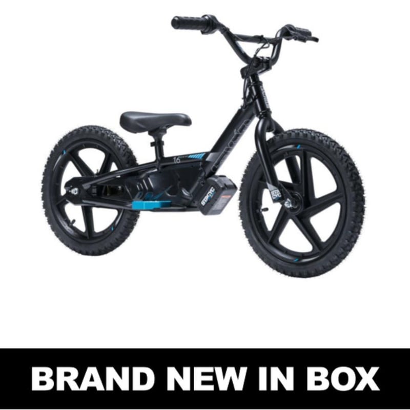 RRP $1699 STACYC 16 EDrive Brushless Electric BikeSHARE THE LOVE OF RIDINGWe are Parents. We love riding. We share it with our kids.STACYC™ Stability Cycle/sta•sik/What is STACYC™? STACYC is an electric powered push bike that bridges the gap between push bikes and bicycles /motorcycles. We provide a light weight, non-intimidating riding experience for young children Our stable bike geometry, low seat height and ergonomic features allow for easy push and glide functions, as well as exceptional powered mode fun. Break the normality and ditch the screen; engage the kids with outdoor riding and play. LIGHT WEIGHTHeat treated, Aluminum Alloy frameQuick Change Li-Ion BatteryBMX style forkPneumatic TiresPUSH+3 POWER MODES1 non-powered mode: Push Bike Function (NO POWER) + 3 powered modes: Training (SLOW - RED) / Standard (FAST WALK - YELLOW) / Advanced (SKILLED - GREEN)QUICK CHANGE, LI-ION BATTERYLight weight and powerful Li-ION batteries. 45-60 minutes charge time, 30-60 minutes run time.**PERFECT FOR 5-7YR OLD RIPPERS UNDER 34KG, WITH 45-60CM INSEAMHIGH OUTPUT BRUSHLESS MOTOR20% more power and than original 16eDRIVE10% more efficient than original 16eDRIVEIncreased durability #e2mob