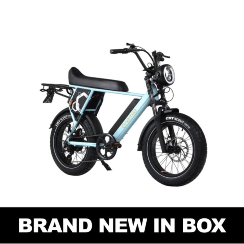 RRP $4899 OneMile P40 Pro Scrambler Electric Bike - Icy GreyThe Scrambler P40 Pro elevates your ride with premium upgrades, combining robust performance with enhanced safety and control. Powered by the same 850W AIKEMA motor and a high-capacity 52V 19.2Ah lithium battery, the P40 Pro hits speeds of up to 45 km/h and delivers a solid 60 km range. It’s built to handle urban commutes and off-road paths alike, now equipped with larger 203 mm hydraulic disc brakes for even greater stopping power and CST 20” fat tyres for improved grip and durability. Additional features include integrated turn indicators for increased road safety, a clear LCD display, powerful LED headlight, and IP54 water resistance. Whether you're riding through city streets or exploring on weekends, the P40 Pro is your ultimate all-terrain companion. #e2mob