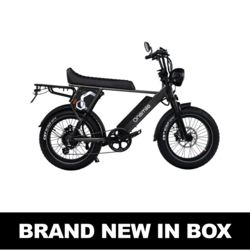 RRP $4899 OneMile P40 Pro Scrambler Electric Bike - BlackThe Scrambler P40 Pro elevates your ride with premium upgrades, combining robust performance with enhanced safety and control. Powered by the same 850W AIKEMA motor and a high-capacity 52V 19.2Ah lithium battery, the P40 Pro hits speeds of up to 45 km/h and delivers a solid 60 km range. It’s built to handle urban commutes and off-road paths alike, now equipped with larger 203 mm hydraulic disc brakes for even greater stopping power and CST 20” fat tyres for improved grip and durability. Additional features include integrated turn indicators for increased road safety, a clear LCD display, powerful LED headlight, and IP54 water resistance. Whether you're riding through city streets or exploring on weekends, the P40 Pro is your ultimate all-terrain companion. #e2mob