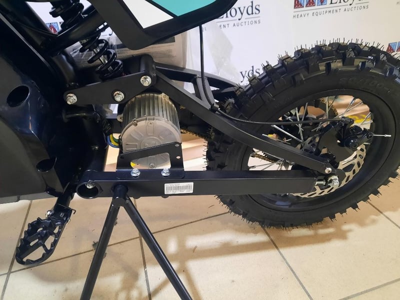 Moto specific wheels and tyres: Spoked wheels with a 14 inch front and 12 inch rear knobby tyres provide traction and control on loose surfaces.