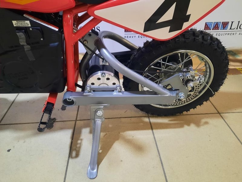 RRP $1299 Razor MX500 Dirt Rocket BikeGeared for Real Dirt ActionThe Razor MX500 Dirt Rocket is built to bring motocross dreams to life. With authentic dirt bike frame geometry, dual suspension, and large knobby tires (16" front, 14" rear), this electric dirt bike offers serious off-road capability for young thrill-seekers.Powered by a high-torque, variable-speed chain-driven motor, the MX500 can reach speeds of up to 24 km/h and delivers up to 40 minutes of continuous ride time on a single charge. A twist-grip throttle gives riders responsive acceleration, while the hand-operated dual disc brakes provide solid stopping power when needed.Its rugged steel frame, double crown fork, and shatter-resistant plastic fairings ensure durability on the track or trail. Folding metal foot pegs, riser handlebars, and soft rubber grips complete this off-road-ready design. With a 36V rechargeable battery system and UL2272-certified electrical system, the MX500 combines power, performance, and safety—so kids aged 14+ can ride like true motocross superstars. #e2mob