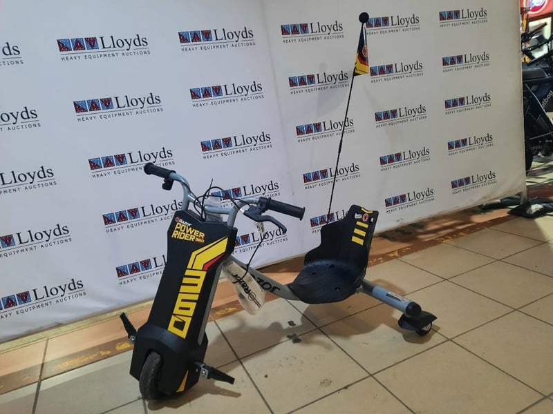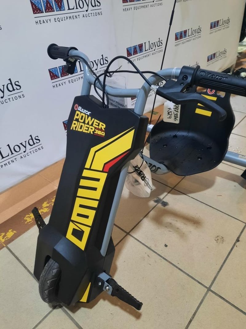 RRP $499 Razor PowerRider 360Electric Three-Wheel PowerBlast into the future with the PowerRider 360 electric powered 3-wheeler. It features a chain-driven motor with push button throttle, front hand-operated braking system, high-impact pneumatic front wheel, and folding foot pegs.And You’re Off!With the push of a button, you’re off – no pedaling required. Race at speeds up to 9 mph (14 km/h), make full 360-degree spins and slide – even drift on its high-performance dual inclined rear caster wheels.Moto-style DesignWelded steel frame with moto-style double crown fork design creates a durable and unique look for this electric tricycle. The throttle and front brake controls are mounted on the handlebars for easy and intuitive control.Key Features:Electric powered 3-wheel design with no pedaling requiredSpeeds up to 14 km/h360-degree spins, drifts, and slides with dual inclined rear caster wheelsHigh-torque, chain-driven motor for smooth performanceDurable welded steel frame with moto-style double crown forkPneumatic front wheel for comfort and controlHand-operated front brake for reliable stoppingFolding metal foot pegs for convenienceSoft rubber grips for comfortUL2272 certified electrical system for safetySpecifications:Age range: 8+ yearsMax load: 54 kgMax speed: 14 km/hRun time: Up to 30 minutesMotor: High-torque, chain-drivenThrottle: Push buttonBrake: Hand-operated, frontFrame/fork: Welded steel with double crown designFront tyre: 8-inch (200 mm) pneumaticRear wheels: Dual inclined urethane caster wheelsBattery: 12V sealed lead-acid, rechargeableProduct weight: 12.2 kgDimensions: 95 cm x 60.2 cm x 61.8 cmInclusions: Battery charger, flagAssembly: Some assembly required #e2mob