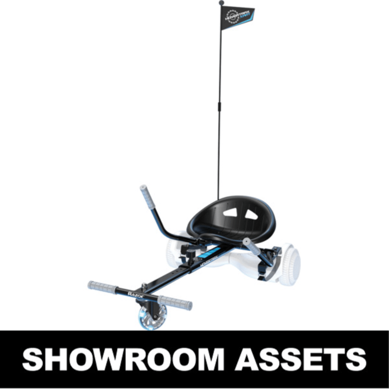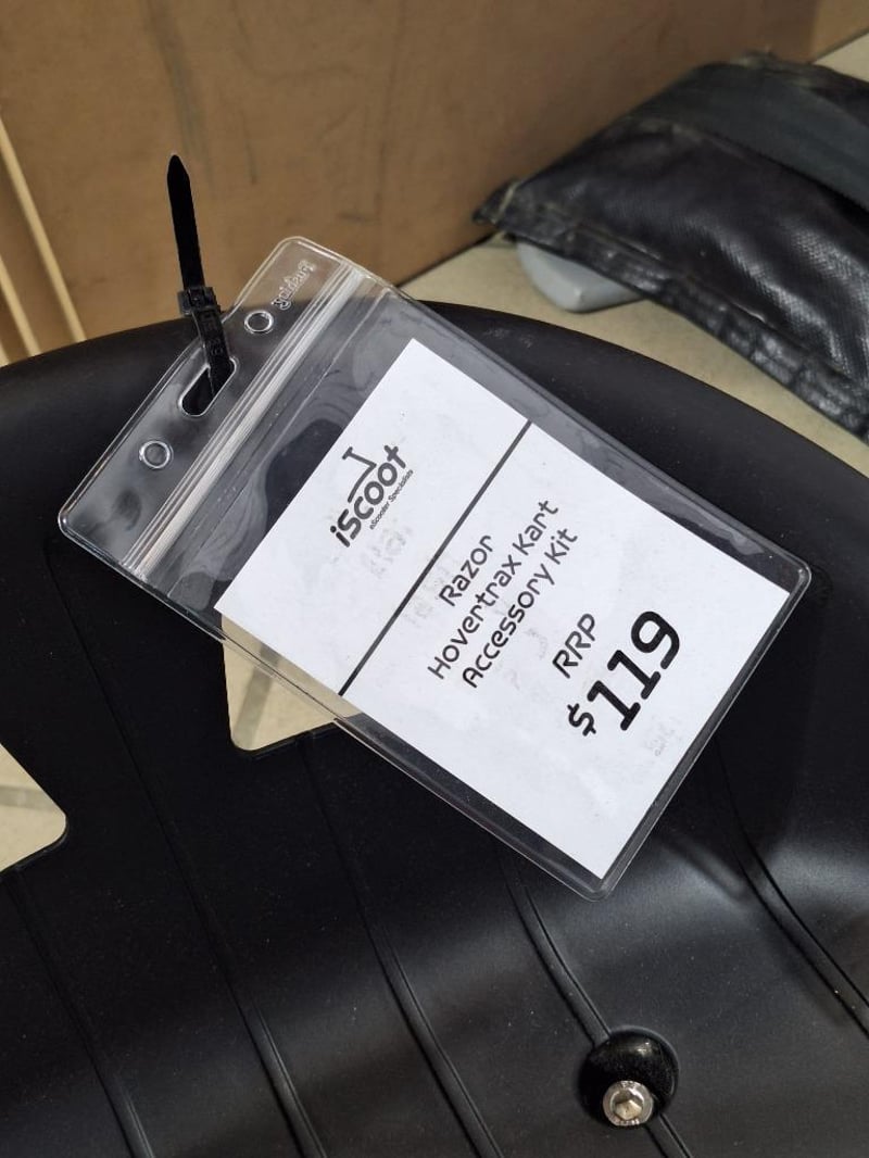 RRP $109 Razor Hovertrax Kart Accessory Kit Hovertrax® Kart – This accessory kit transforms your Hovertrax into a go-kart (not included) CONTROL THE FUN This accessory kit will transform your Hovertrax (not included) or similar hoverboard products into a go-kart with a bucket seat for comfortable riding. Glide on the Hovertrax or ride it as a go-kart! 360° SPINS Using the rubber straps, one can quickly strap in the Hovertrax to assemble the go-kart and adjust the length of the frame from 26” to 34” (650MM–860MM). Rubber-gripped hand levers deliver 360° spinning action! LIGHT UP THE RIDE Features LED light-up caster wheel that automatically activates when the Hovertrax Kart is in motion. FEATURES Tool-Free Frame Adjustment – Easily adjustable frame extends length from 26” to 34” (650MM–860MM) allowing almost anyone (8+) to comfortably enjoy the ride Control the Fun – Rubber-gripped hand levers deliver 360° spinning action Light Up the Ride – features an LED light-up caster wheel that automatically activates when the Hovertrax Kart is in motion Easy Assembly – One can easily convert the Hovertrax into a go-kart using the rubber straps(included) #e2mob