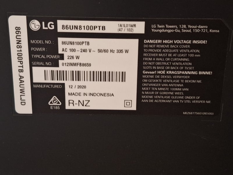 LG 86-inch 4K Ultra HD smart LED TV, No Remote Dimensions H:120cm W:194cm D:30cm