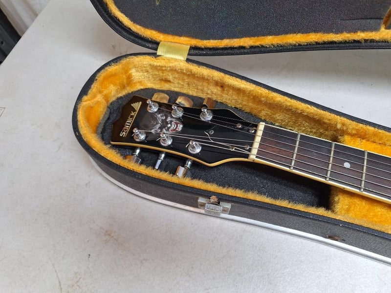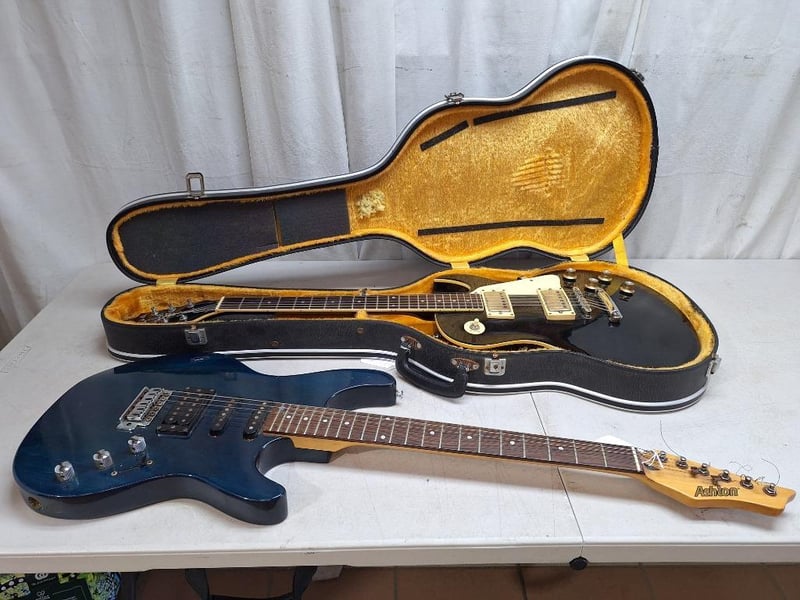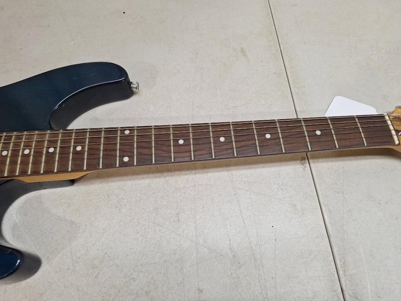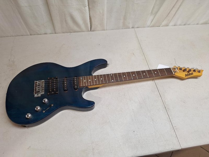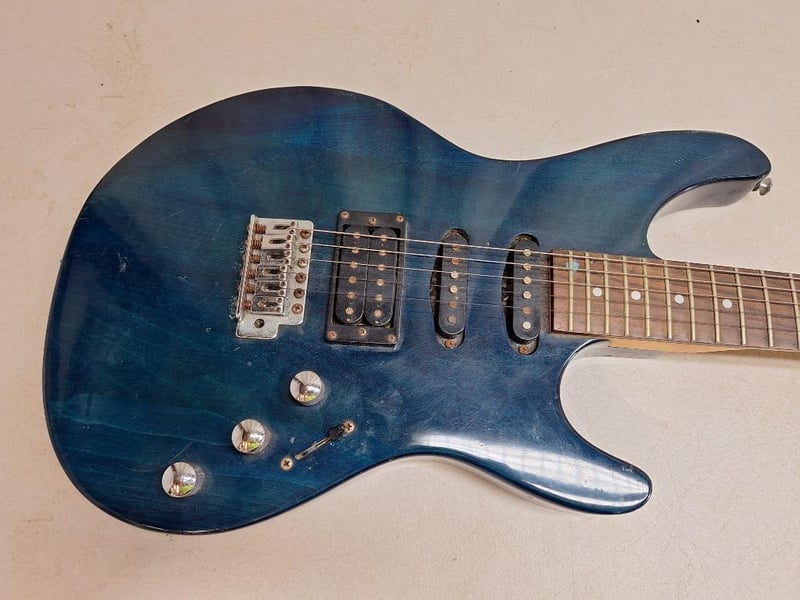 ASHTON guitar electric guitar, blue colour, wooden arm, 1x SAMICK RG-B electric guitar, 24-inch scale, 6-string, black finish, three toaster, with hard carry case