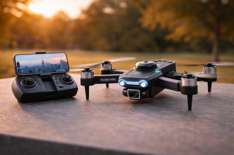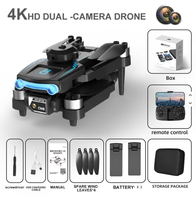 FPV Quadcopter Drone Dual HD Cameras FPV Mobile Phone APP View & Control Remote HD Front Camera & HD Bottom Camera Brushless Motor Improved Image Quality Adjustment Multiple Shooting options Zoom Lens 2.4GHZ Wi-Fi 9 Channel 24cm x 27cm unfolded 3Way Automatic 360 Degree Obstacle Avoidance Auto Trajectory Flying 3D Flip Approx 100-150M Metre Drone Control Smart Flight Gesture Control One Click take off/Landing Spare Blades Zipper Close Storage Bag One-Key Take-off and Landing 360-degree Hover Mode Long Fly Time EXTRA DRONE BATTERY FOR EXTENDED USE. Batteries for remote not included (NEW IN BOX) BLACK (Sometimes in the creation of pictures and videos there may be very small differences in the product itself or size so these images are used only for the visual effect of the product at shown, however the exact product with its specifications and size is always shown in the later photos so please be aware of this.)