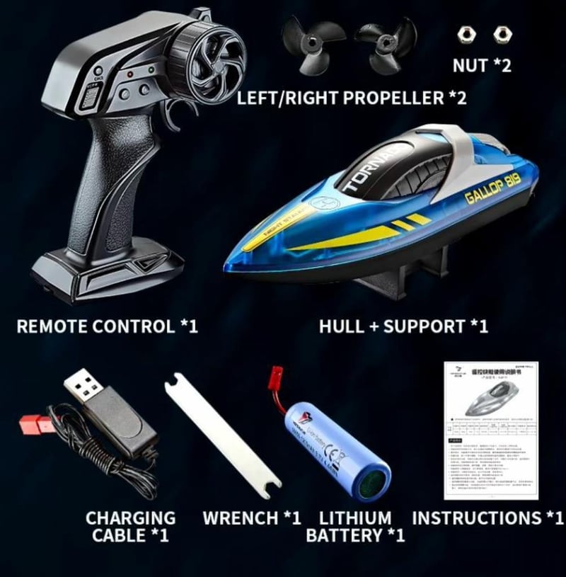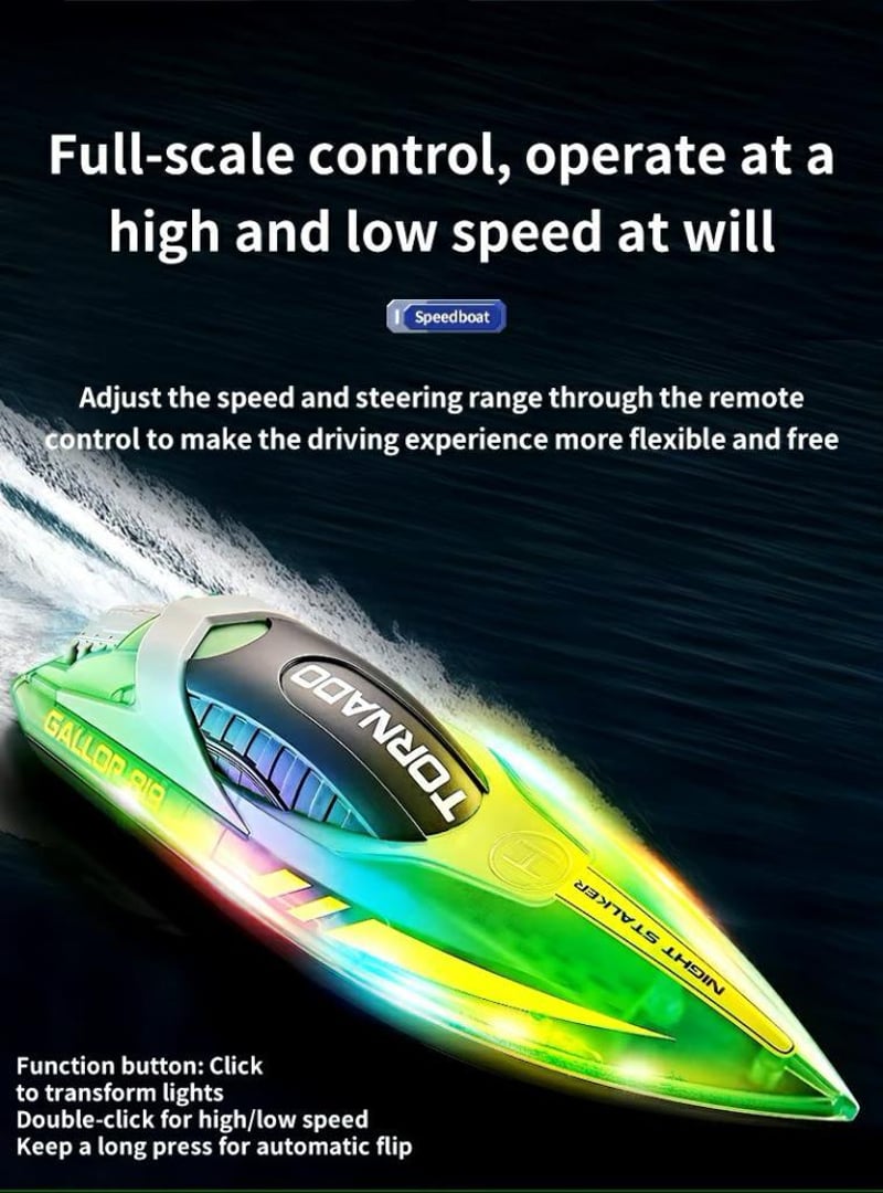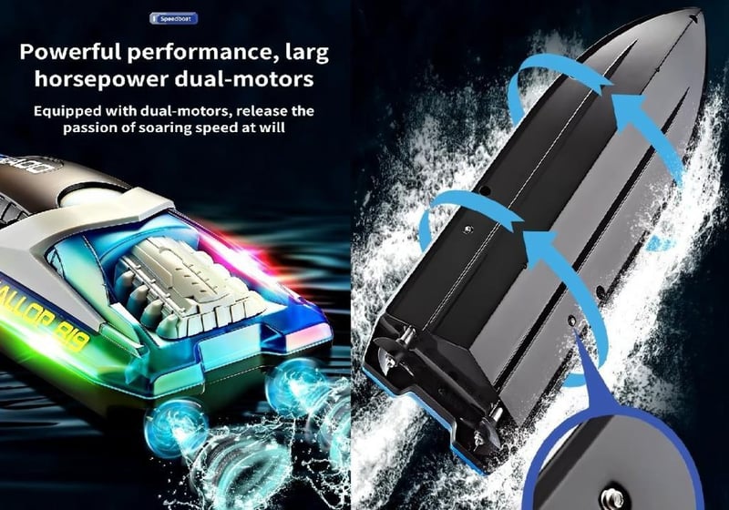 RC Twin Motor Speed boat High Speed Racing Boat 2 Channel Dual Motor Remote Control Boats approx. Over 60 mins play time On Full Charge Dazzling LED Lights One Button Flip on Capsize size 25cm x 9cm X 9cm approx. waterproof/sealed USB Charging Up To 60 m Distance Control Remote batteries not included (NEW IN BOX) BLUE (Sometimes in the creation of pictures and videos there may be very small differences in the product itself or size so these images are used only for the visual effect of the product shown, however the exact product with its specifications and size is always shown in the later photos so please be aware of this.)