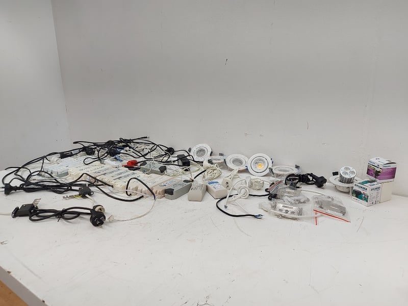 Assorted Lot Includes, Led Light Cases, Light Power Cords, Electronic Ballast, HF PreFormer, Led Driver, Cobsftand Current Led Driver, Quantity As LotSold As Lot