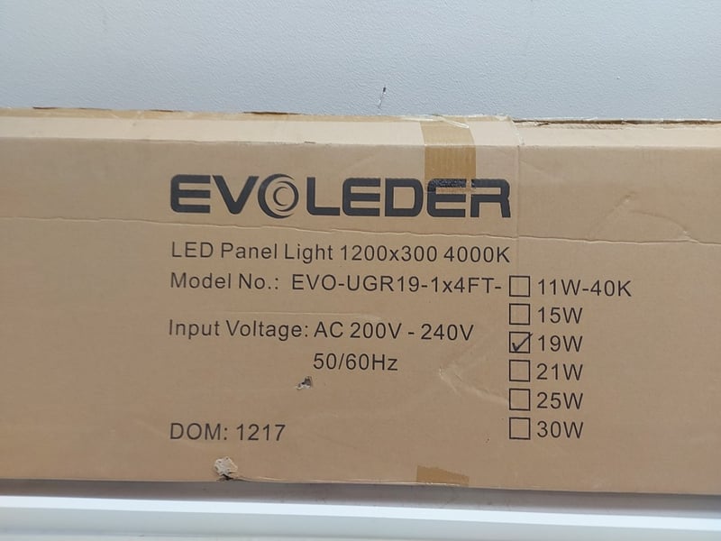 Led Panel Light, Model EVO-UGR19-1 1×4FT, EVOLEDER, Dimensions 1200x300, 4000K, Quantity 2Sold A Lot