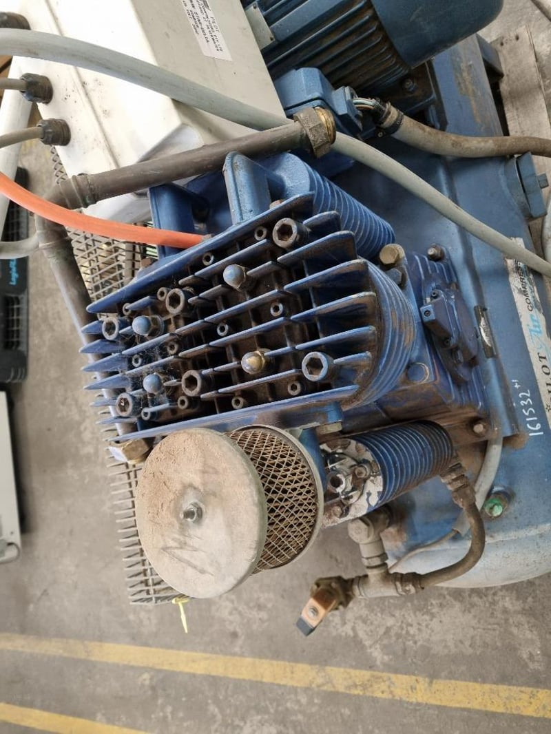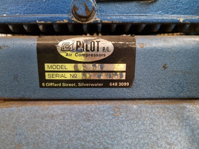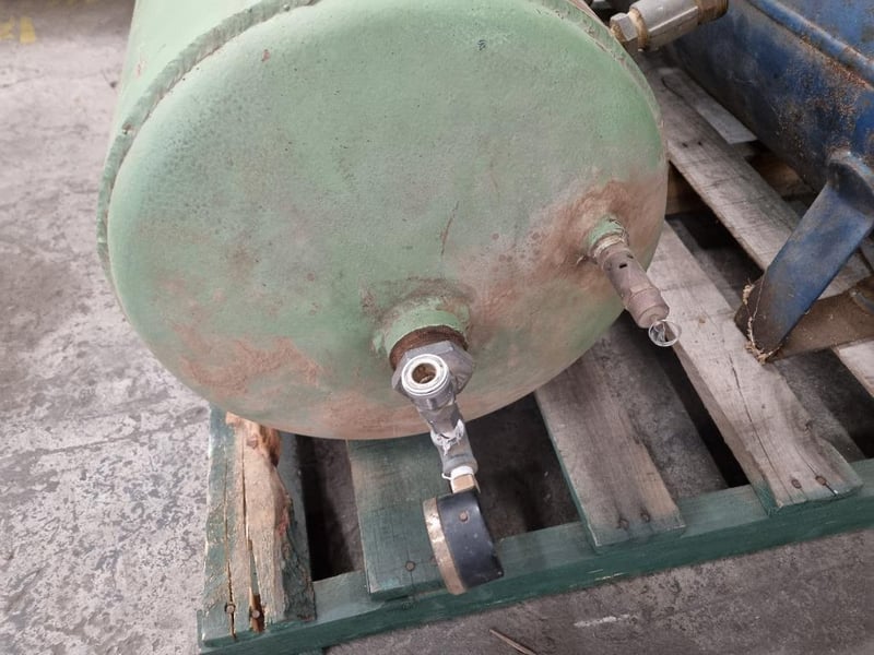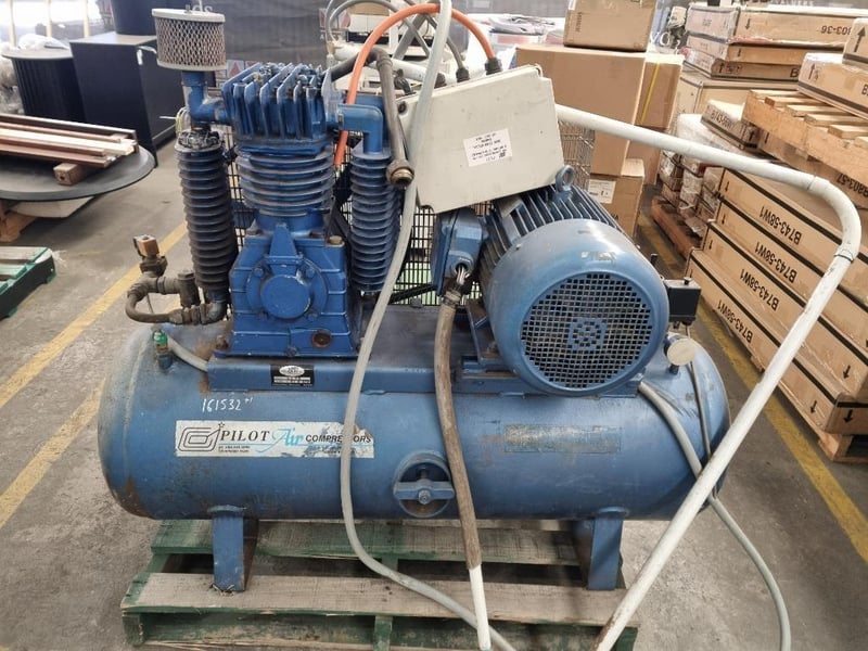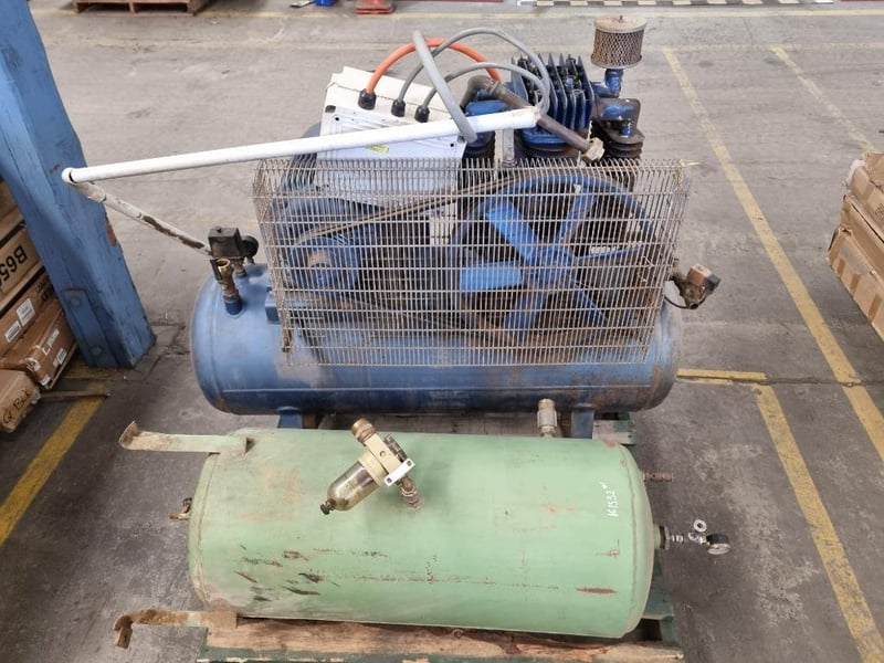 Pilot Air Compressor & Tank Pallet Lot Air Compressor Make: Pilot Air Compressor Model: NS*0 Colour: Blue Notes: Unconfirmed if starts and operates Green Tank Make, Model, Capacity Etc Unconfirmed INSPECTION ADVISED #NO KEY