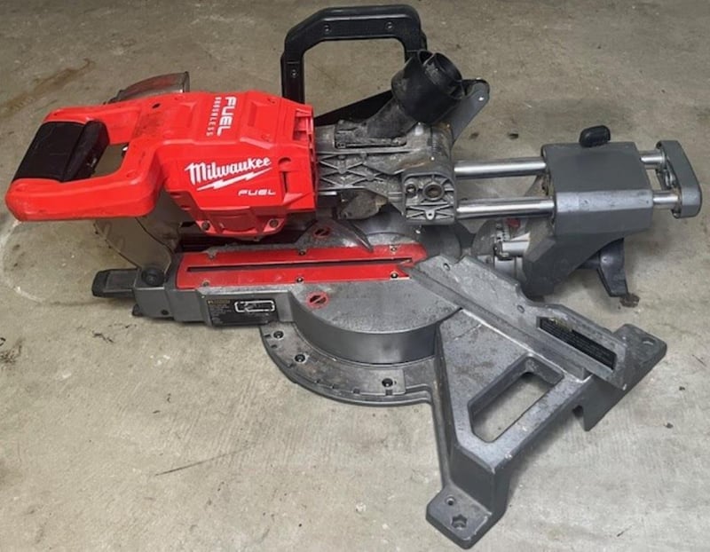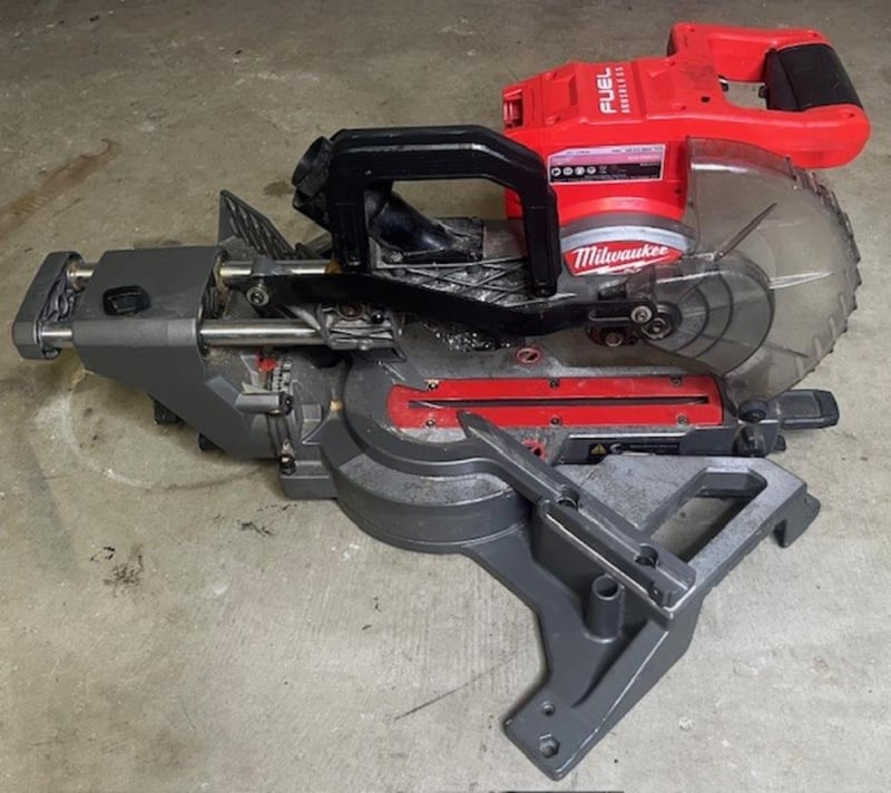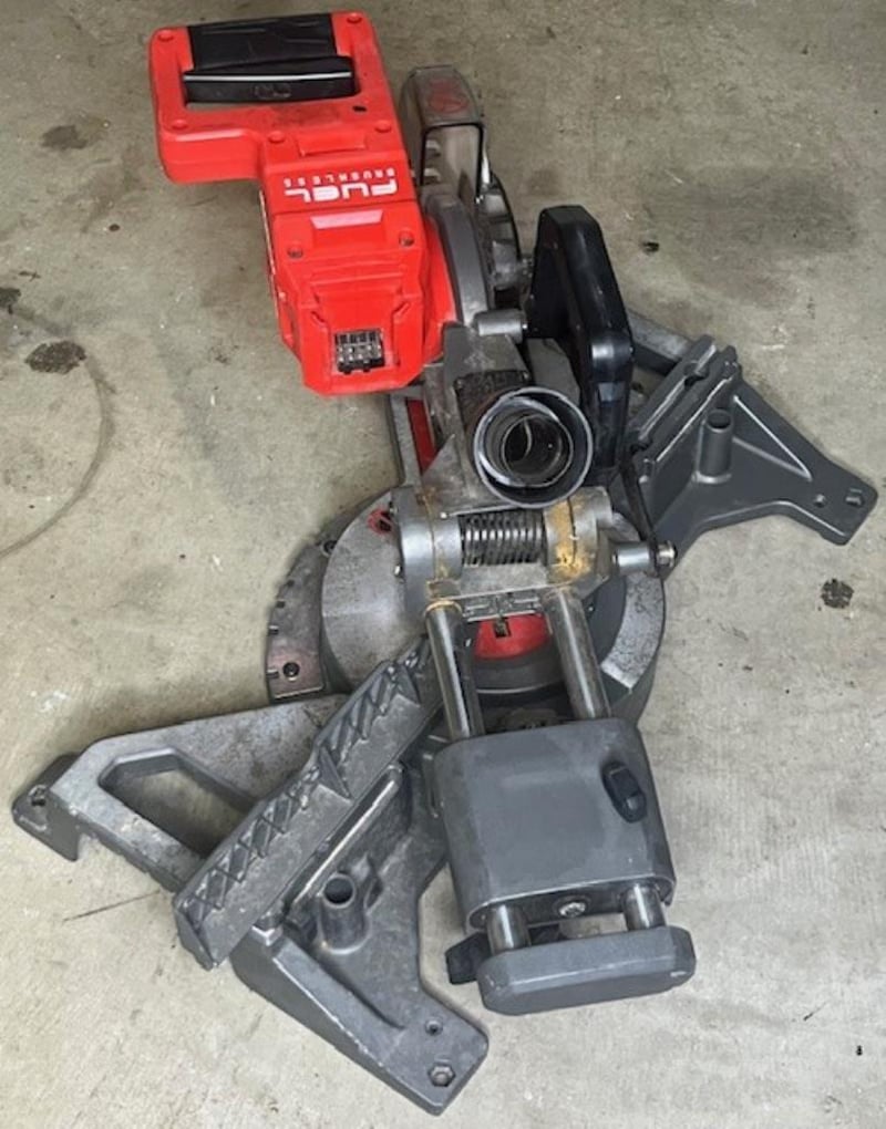 Cordless Milwaukee 18V sliding compound mitre saw. 1 x M18 FMS184. Skin only, no battery. Condition: Not working, untested, for parts or repair.
