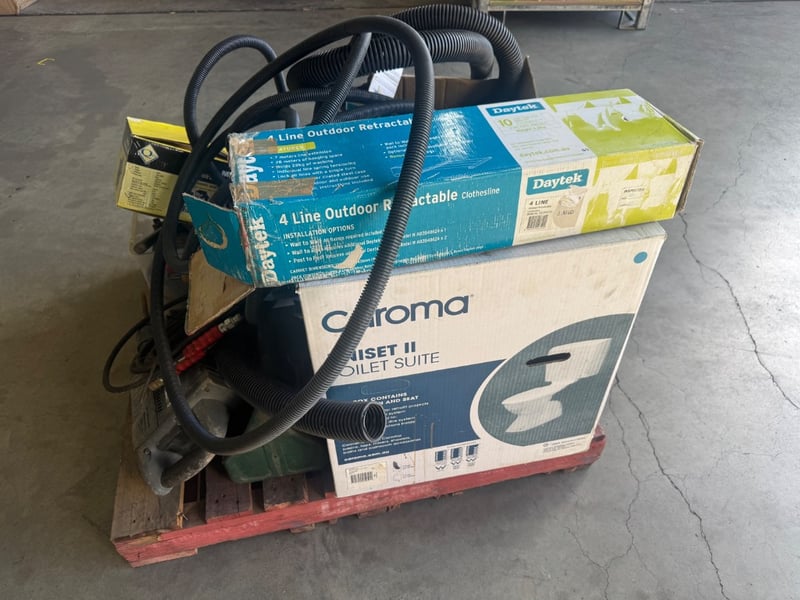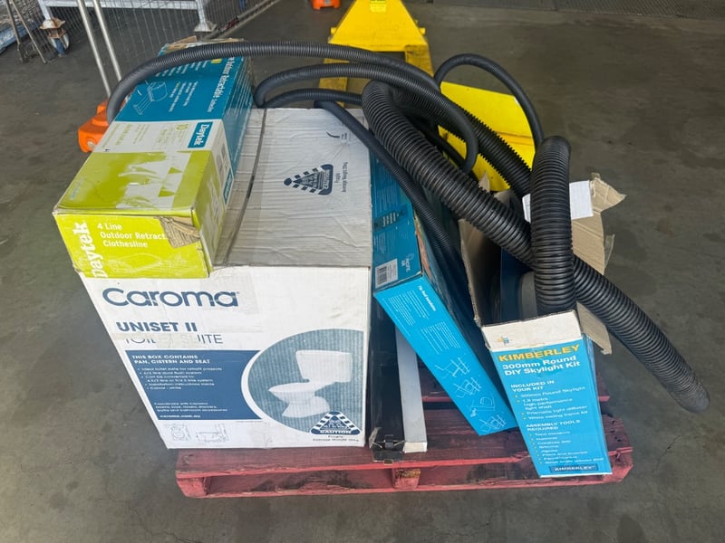 Renovating supplies including toilet suite, portable tile saw, range hood roof vent and more