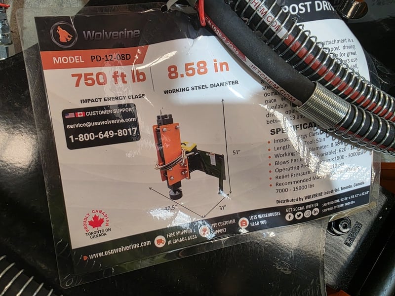 FACTORY DIRECT ** Unused WOLVERINE, Skid Steer Post Driver, PD-12-08D