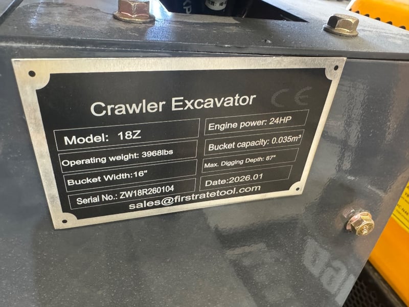 FACTORY DIRECT** 2026 Unused MIVA VA18Z, Crawler Excavator Make: MIVA Model: VA18Z Body: Crawler Excavator Operating Weight: 3968lbs Engine power: 24HP Bucket Width: 16" Bucket capacity: 0.035m3 Max. digging depth: 87" Serial No: ZW18R260116 Please note: minor scuffs and marks may be evident For more information Contact King Cheung on 0477987576 or [email protected] *** PLEASE NOTE Collections must occur within 7 days of Auction Ending*** Note: OEM images and VIDEOS shown are for illustration purposes only, and used as a guide only, inspections highly recommended. DFCU1693215 #Plant&Equipment