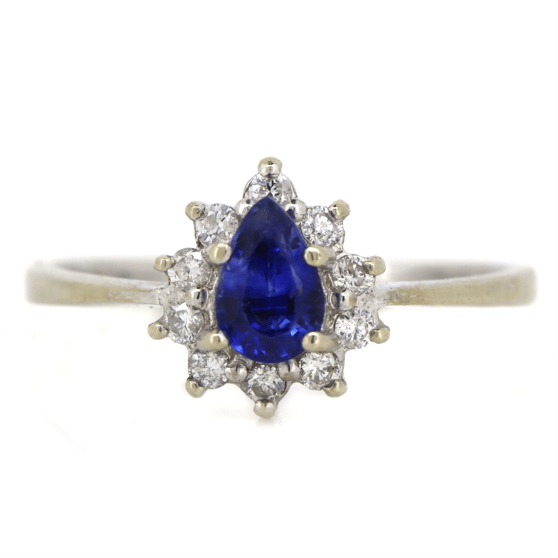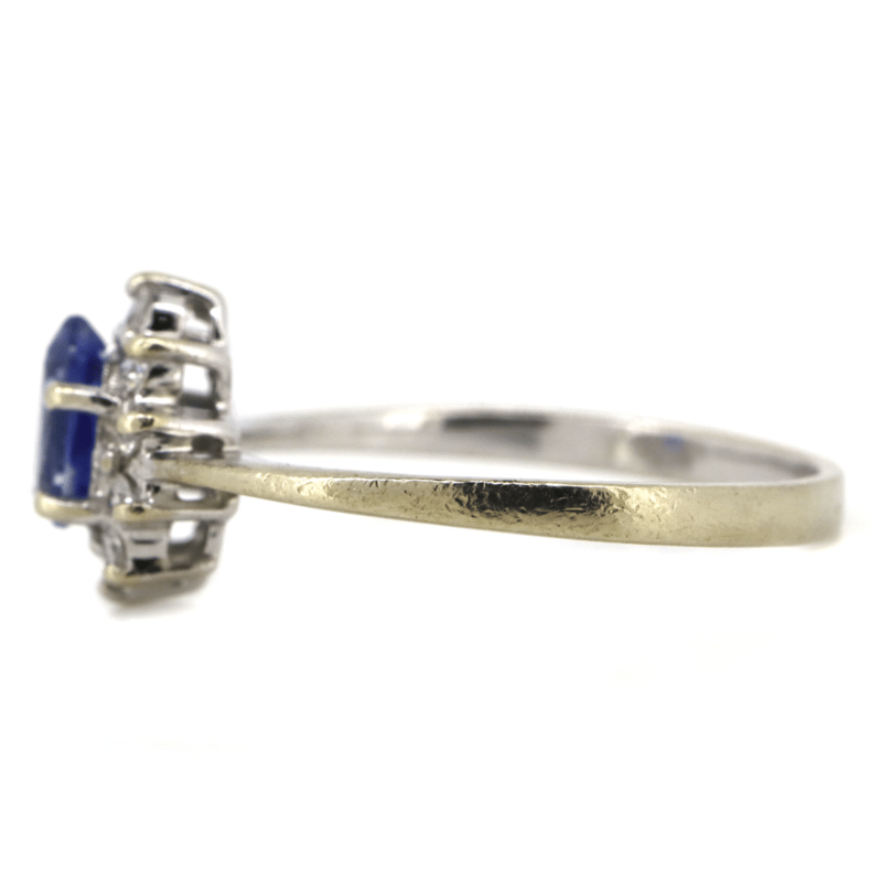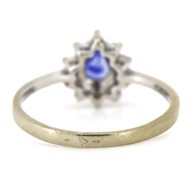 9K WHITE GOLD, CREATED SAPPHIRE AND DIAMOND, DRESS RING